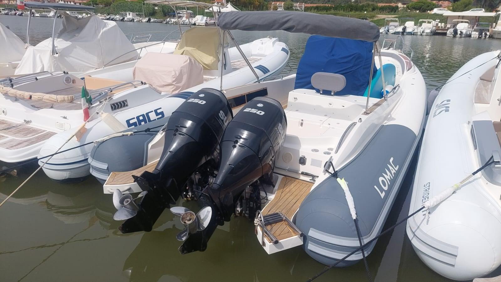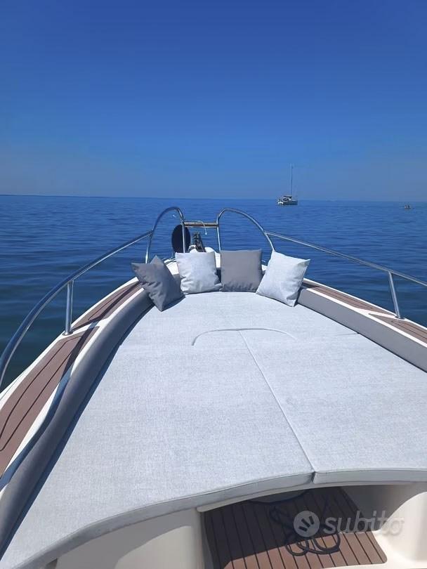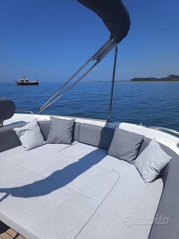 Tubulars, teak, upholstery, awning and wheelhouse, all of May 2025, hull brought to zero and completely redone, dinghy with bathroom, kitchenette, kept maniacally equal to the new Suzuki engines, 250hp, 450 hours, feet overhauled and complete servicing, top performance, consumption 45 liters per hour, total at 21 knots, bow thruster, GPS 10 inches.