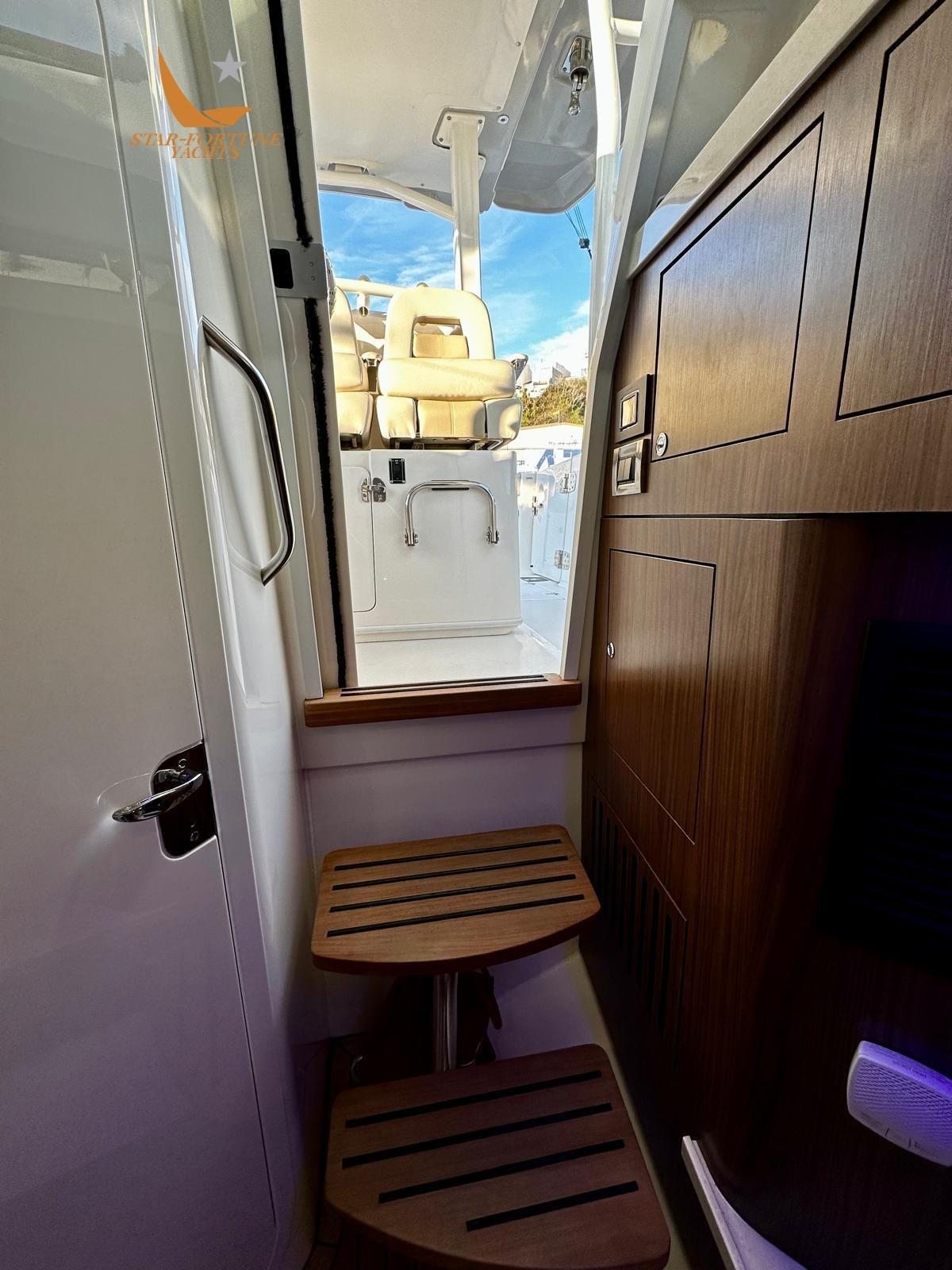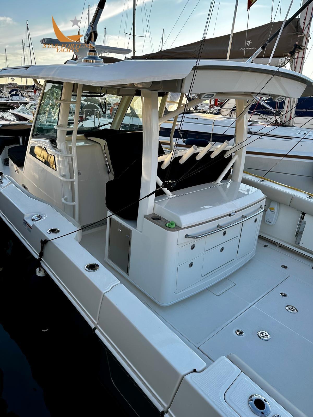 The spacious bow equipped with lounge and sofa provides guests with ample seating and storage space, while in the spacious aft cockpit you will find the features to catch any sport fishing fish plus the removable table and a summer kitchen are perfect for entertaining friends and family.