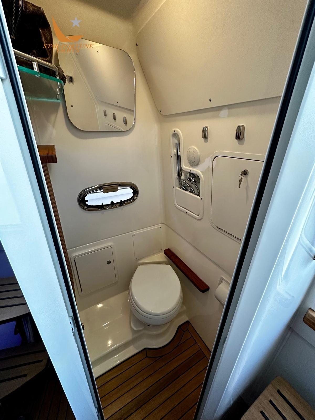 Suitable for cruising, this boat offers a sleeping space for three people, as well as a functional bathroom.