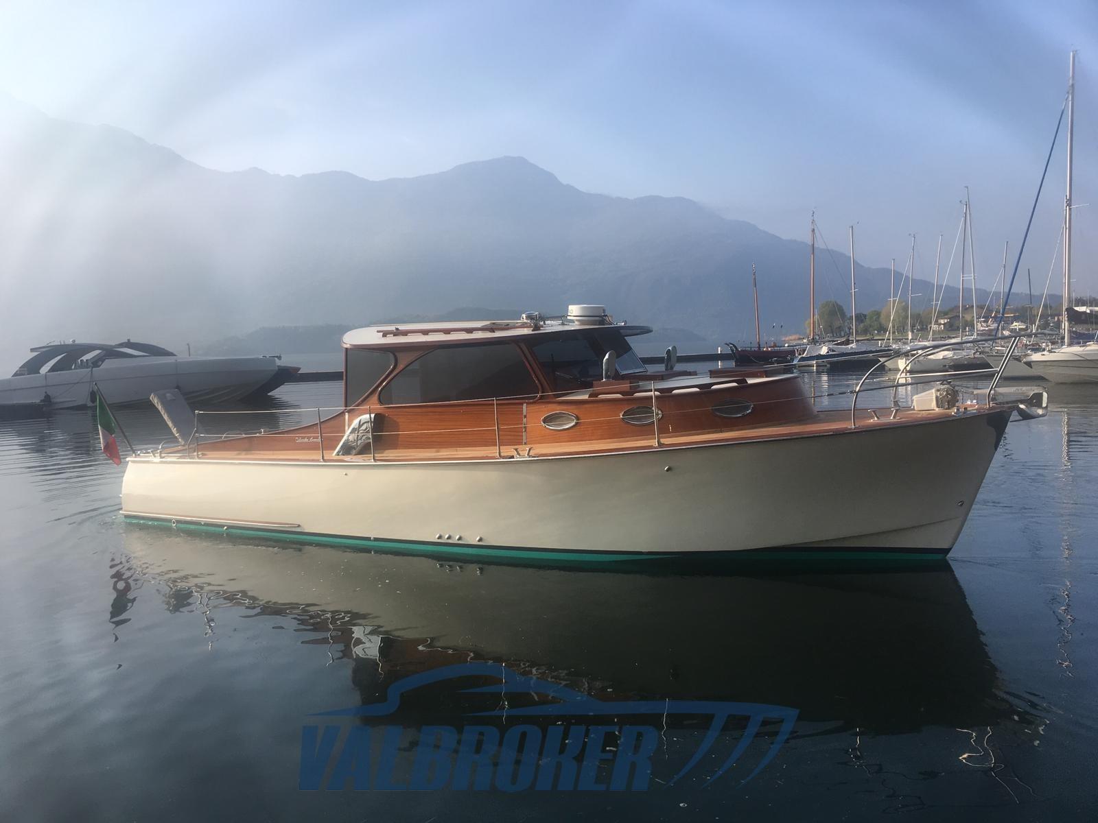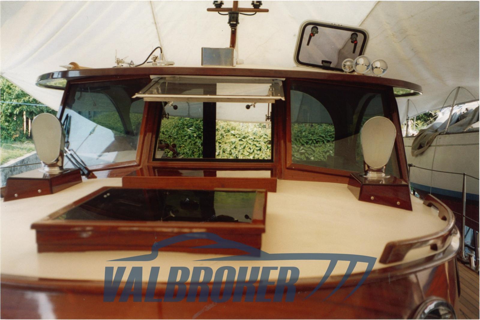 The boat is built in wood on the lines of the standard boat Rose Island 38', with which it shares the Designer and the proven sailing and seaworthiness qualities. It consists of oak wood frames, triple laminated mahogany planking and solid mahogany and mahogany plywood superstructures with a beautiful Teak deck. From the keel to the mast, there is not a single fiberglass component. There are numerous accessories and features that contribute to making this hull complete and self-sufficient even for long-range cruises. From the electrical panel on which every single on-board user is highlighted, to the mooring winch at the stern, from the outdoor shower with hot and cold water to the remote-controlled gangway, from the 3.5 KW generator under the stern, to the flaps that help to keep the trim stable while underway and to the side wooden fins to protect the sides.