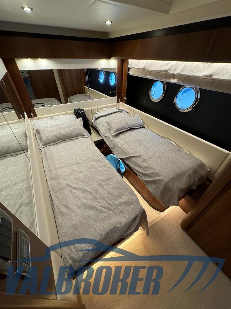 The quality and elegance typical of Made in Italy are clearly visible in this yacht that offers 3 huge cabins: full-beam aft owner's cabin, VIP cabin, third cabin with two separate beds all with private bathroom and a double cabin for the crew also with private bathroom. More powerful Volvo Penta engines D11 IPS 800 engine.