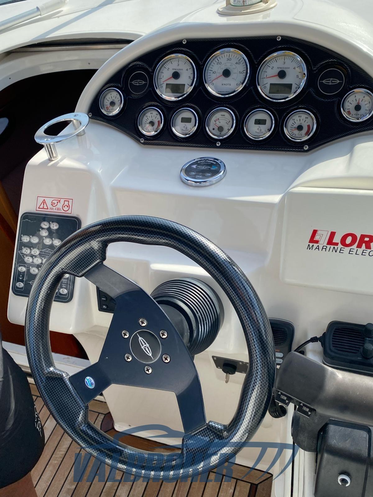 Visible on Lake Garda and always used in fresh water. Powered by 2x225 HP Volvo Penta 4.3 V6 duo prop petrol with regular servicing. Model year 2007.
