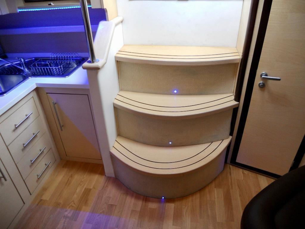 Fume/Gas Detector, Engine Alarm, Bilge Alarm, Electric Engine Compartment Opening, 5 Batteries (5 da 180), 2 Battery charger, Bow Thruster (Maggiorata a 95), Electric Flaps, Hard top, Courtesy Lights, Gangway (Idraulica), Teak deck, Teak Cockpit, Shorepower connector, Water harbor connector system, Electric Windlass, cockpit table.