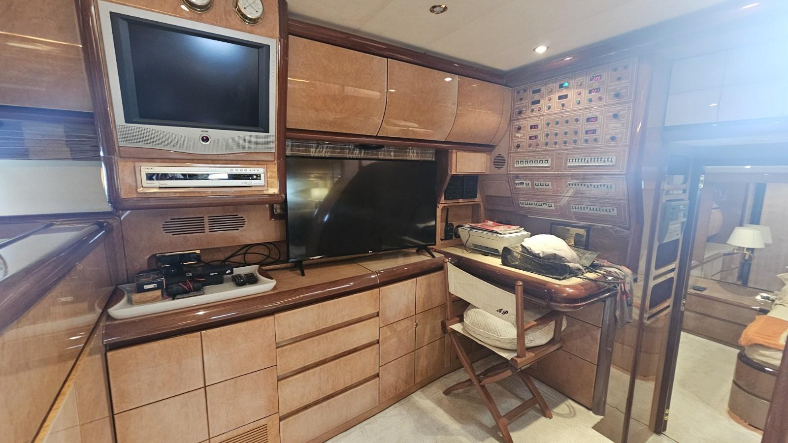 Condaria air conditioning - 2 x 15 kW Kohler generators - retractable electro-hydraulic gangway - aft tender garage - tender with outboard - hydraulic bow thruster - satellite TV antenna - LCD TV - watermaker - cockpit bar cabinet with sink and fridge - fridge - freezer - electric 4-burner hob - dishwasher - stereo - ice maker - air compressor.