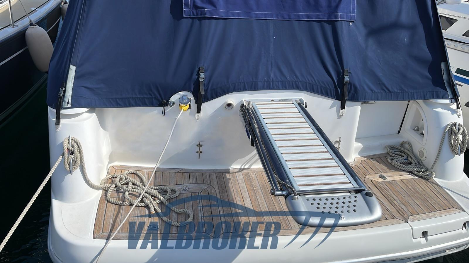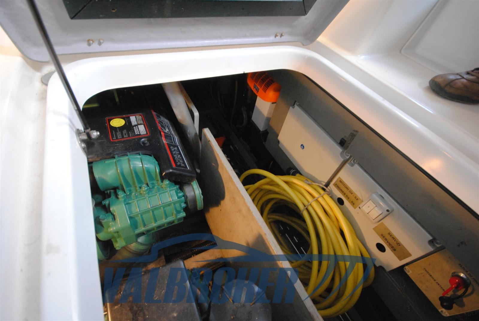 Electric Engine Compartment Opening, Water pressure pump, Battery charger (Quick), Deck Shower, Bow Thruster (Vetus), Flaps Indicators (Bennett), Washbasin in the cockpit, Gangway (Besenzoni idraulica), Platform, Automatic Bilge Pump, Electric Windlass (Quick), swimming ladder, cockpit table.