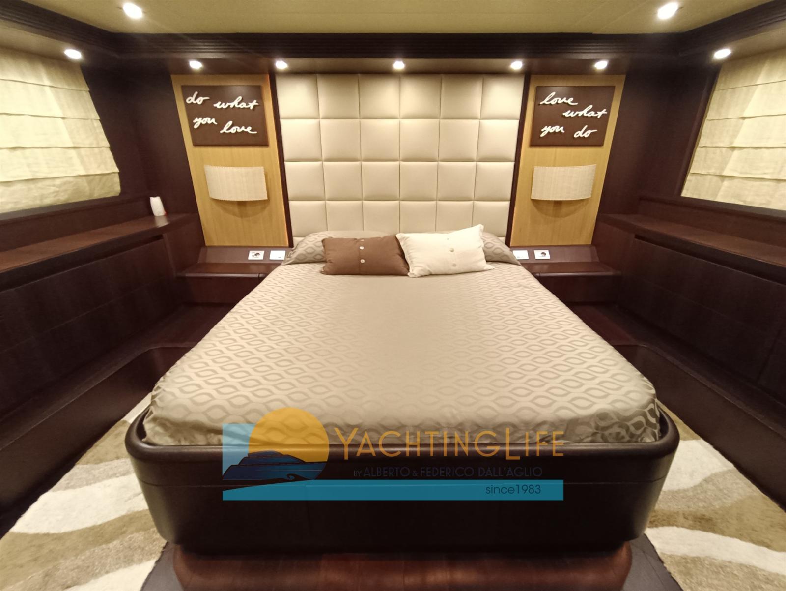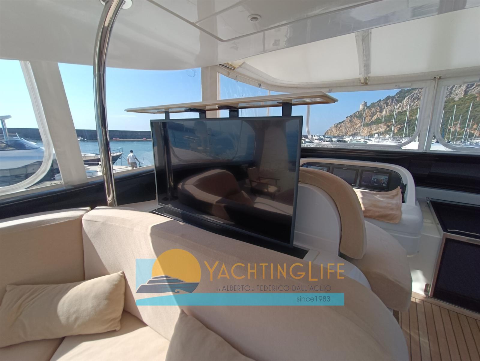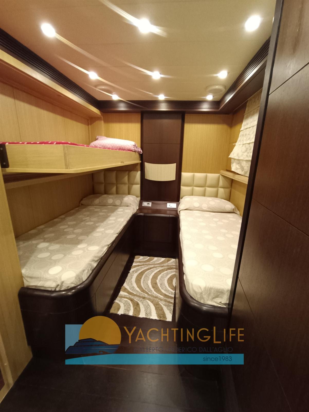 Single owner - Truly excellent condition - Hard Top version - Layout with 3 doubles and a triple, each with bathroom, day toilet, 2 crew cabins each with a bathroom (single captain at the stern double crew at the bow)- Mitsubishi Zero Speed stabilizers - Raymarine navigation electronics replaced 2017 - Pleasure boat under 24mt. - Jacuzzi on the fly - Flir thermal imaging camera for night navigation - Interiors in bleached oak and wenge - Increased air conditioning in the saloon and also in the engine room - Exhausts with ceramic insulation - Kitchen with electric lock