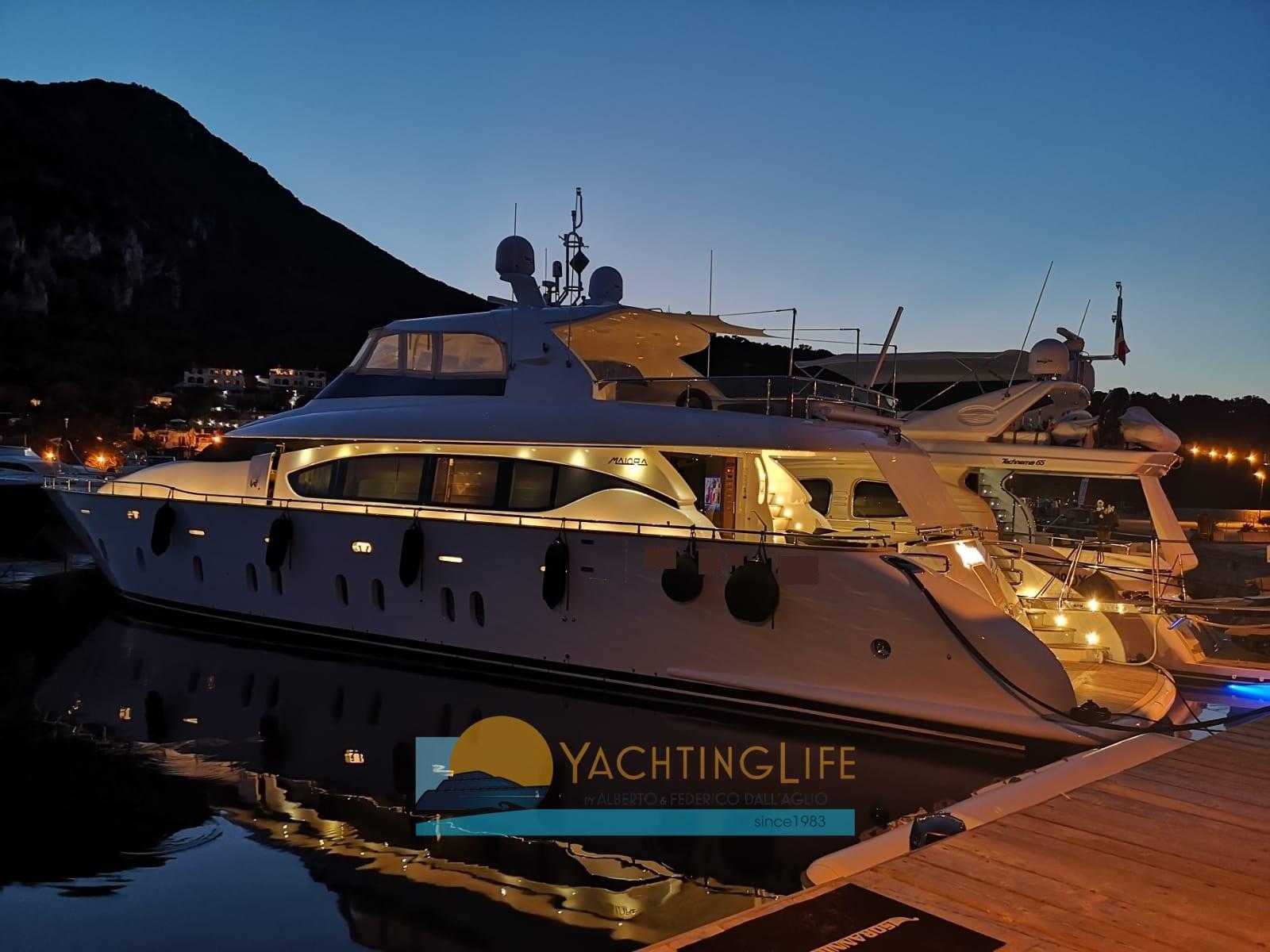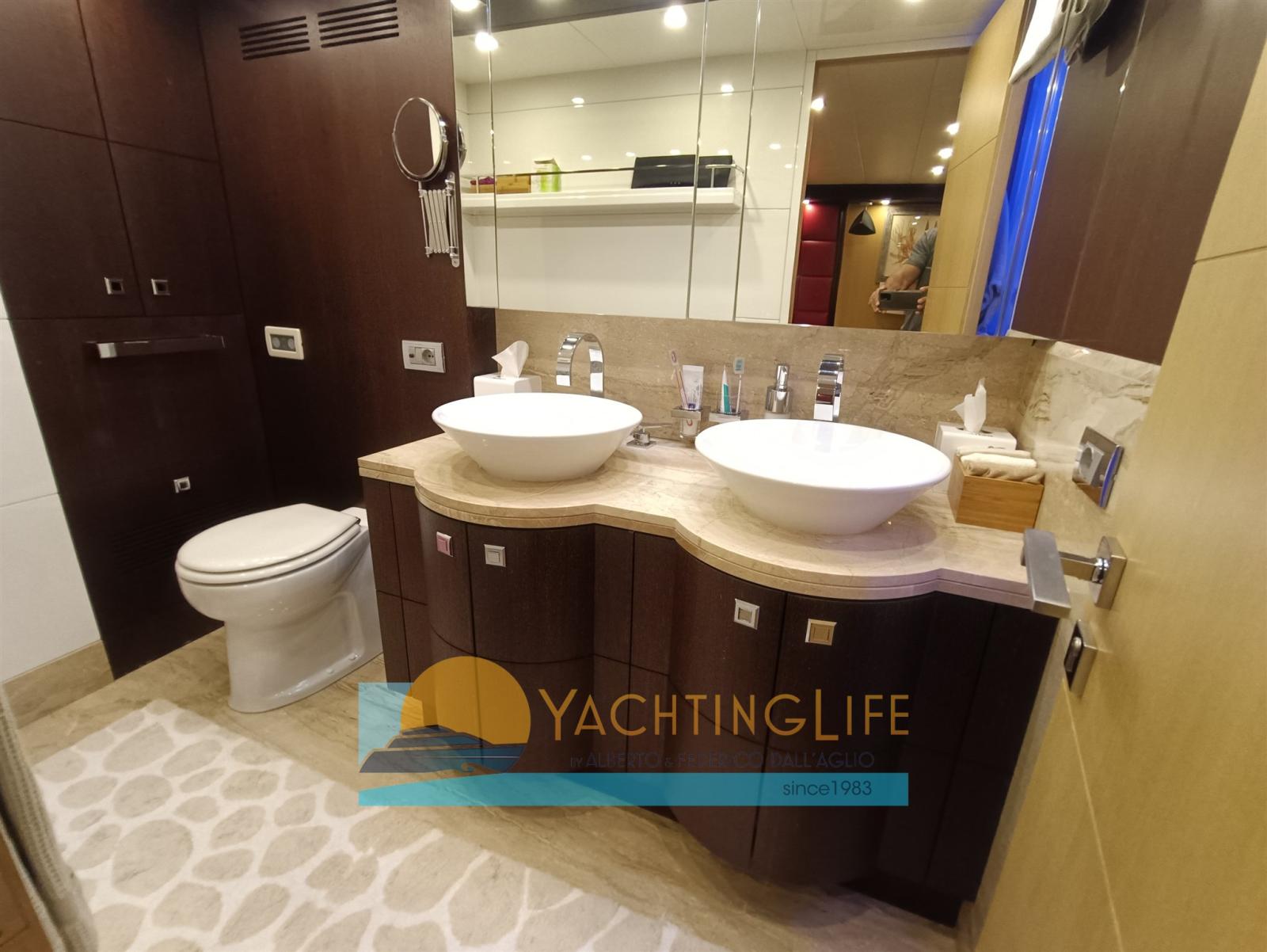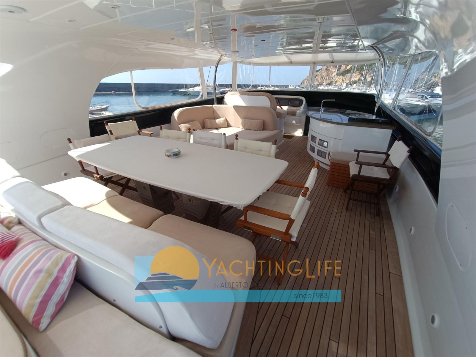 Single owner - Truly excellent condition - Hard Top version - Layout with 3 doubles and a triple, each with bathroom, day toilet, 2 crew cabins each with a bathroom (single captain at the stern double crew at the bow)- Mitsubishi Zero Speed stabilizers - Raymarine navigation electronics replaced 2017 - Pleasure boat under 24mt. - Jacuzzi on the fly - Flir thermal imaging camera for night navigation - Interiors in bleached oak and wenge - Increased air conditioning in the saloon and also in the engine room - Exhausts with ceramic insulation - Kitchen with electric lock