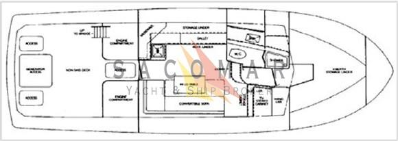 Flaps, stern platform, wooden interior, shower cubicle, electric winch, deep bottom fishing sockets, Racor filters