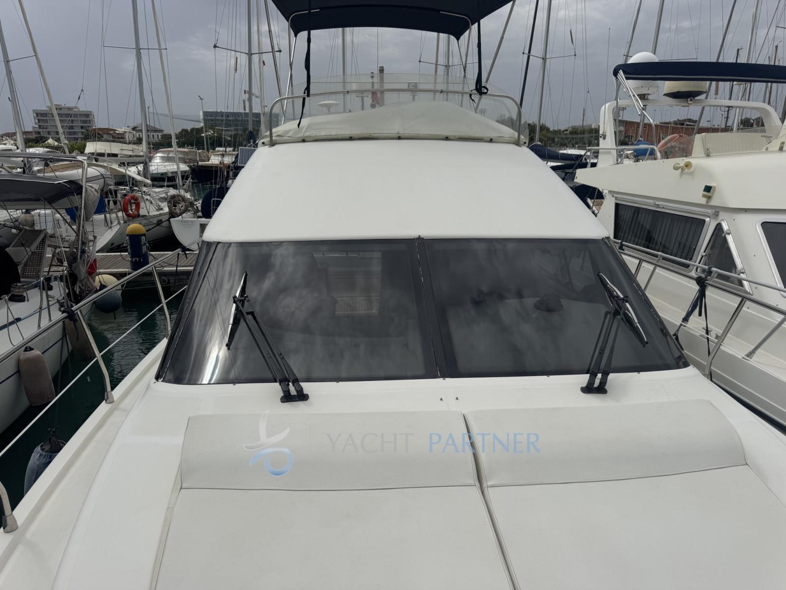 Length 12.35 m -Width 4.0 m -Draught 1.00 m -Displacement 10,500 kg -Fuel tank 1200l-Water tank 500 l-Caterpillar 3116 engines - 2 x 350 hp Engine hours 1300 approx. -Engines serviced 2025 by the CAT dealer -2 cabins -2 bathrooms -Kitchen -Fixed and mobile refrigerator -Air conditioning -Mase generator -Electric winch -Bow thruster -Raymarine GPS (both inside and on the fly) -Navionics cartography -Fixed and mobile VHF -Stereo system -Satellite TV system -TV in dinette -Swim ladder -Porthole mosquito nets -Sand-colored interior and exterior upholstery -Teak interior and exterior -Chain and anchor -Electrical system -Hydraulic gangway -Hydraulic gangway controls -Side cover-Winter cockpit tarpaulin cover -Summer aft sun cover - Fly seat cover -Fly awning -Safety certificate in force with expiration 2027