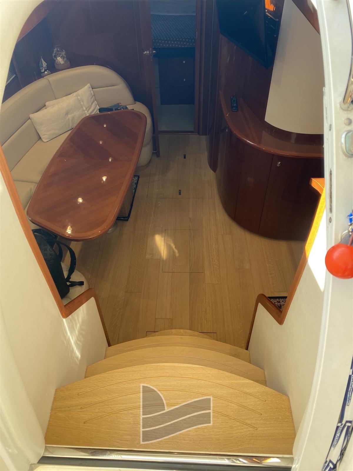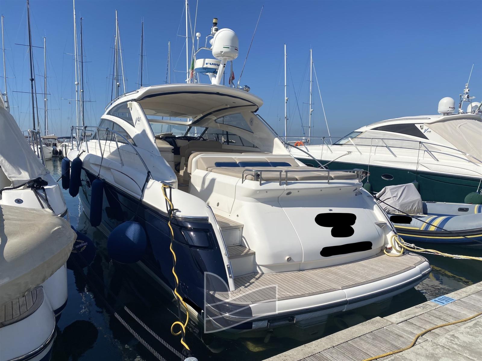 Engine Alarm, Water pressure pump, Special Colour (Blue Navy), Deck Shower, 2 Hydraulic Flaps, Hard top, Fire Extinguishing System, Washbasin in the cockpit, Gangway, Platform (di poppa in teak), Entry door, Teak Cockpit, Shorepower connector, Water harbor connector system, Electric Windlass, swimming ladder, cockpit table, Horn.