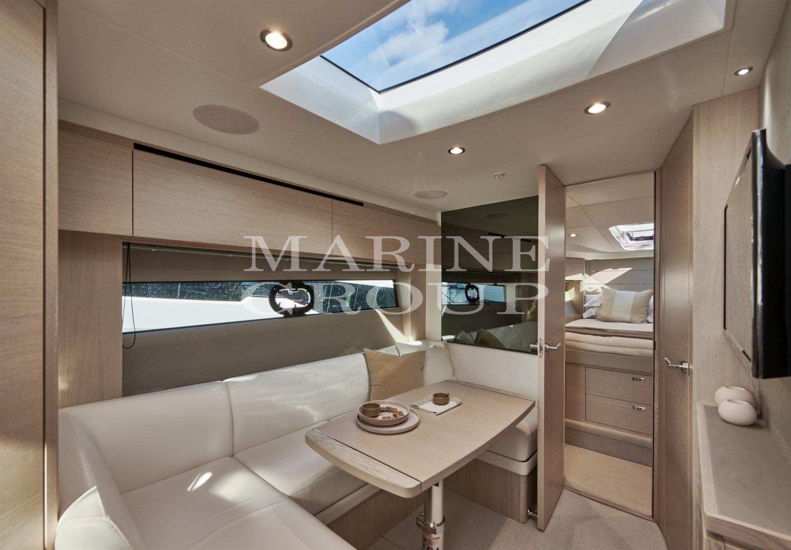 Alba oak interiors with satin finish - Dinette with sofa that converts into a bed - Master cabin in the bow - Guest cabin with two single beds that can be converted into a double bed plus a third bed - Large bathroom with separate shower