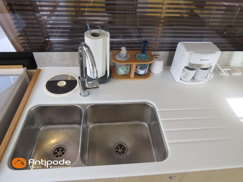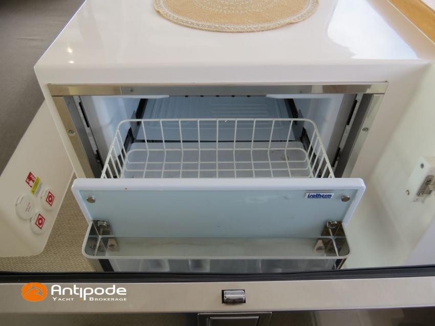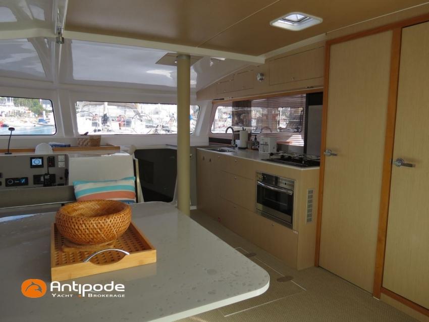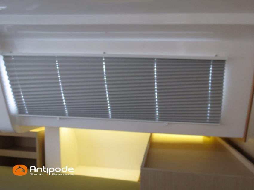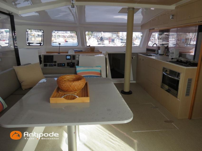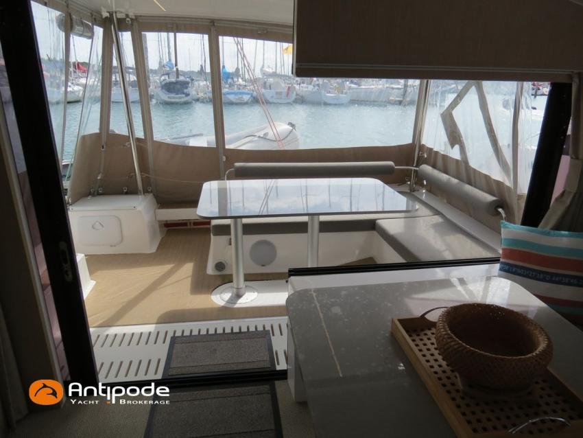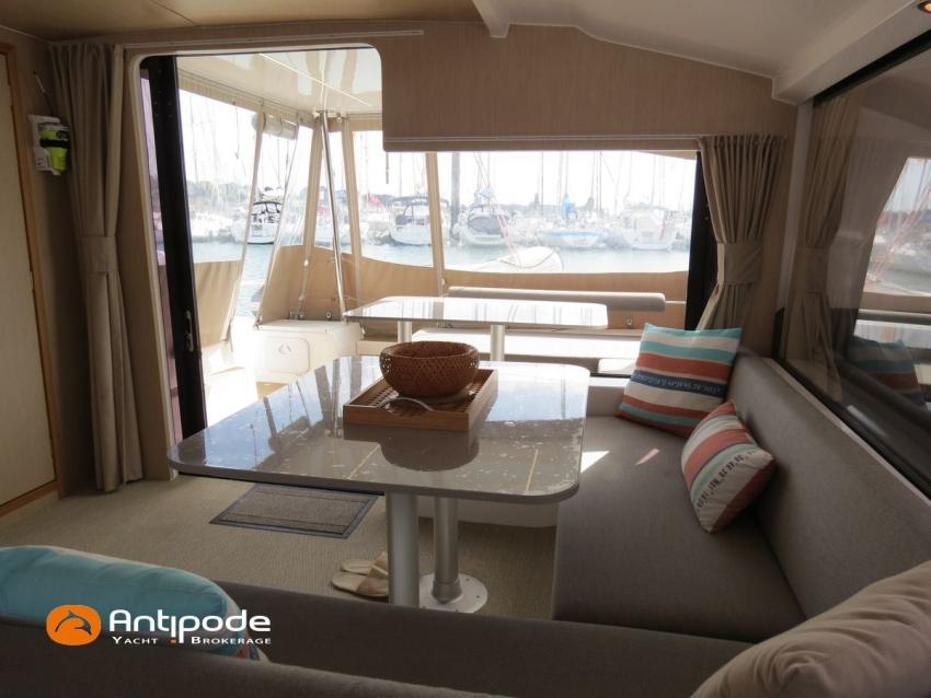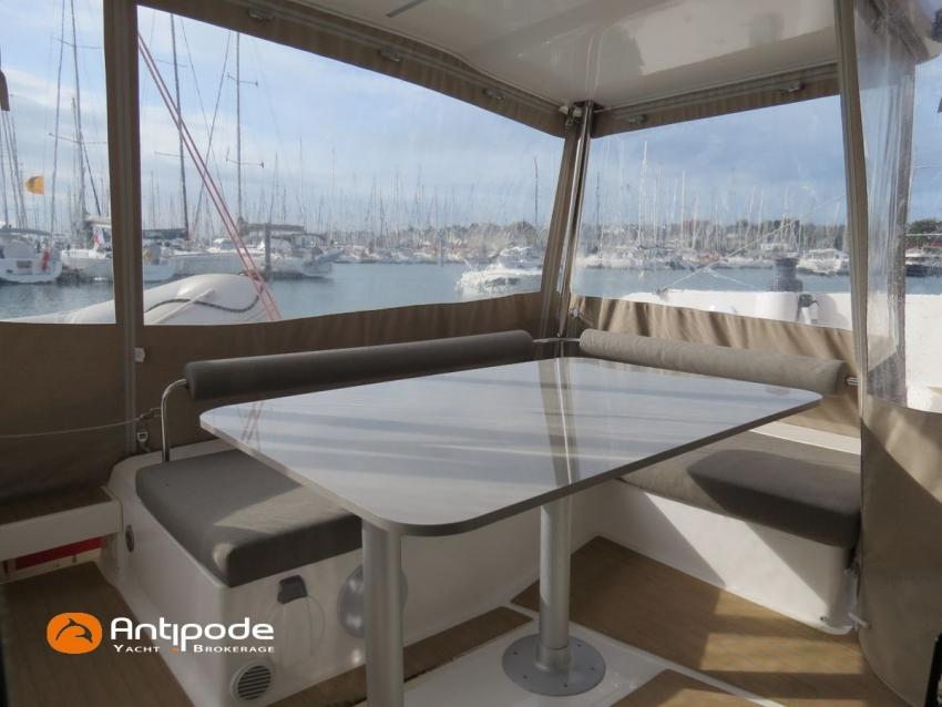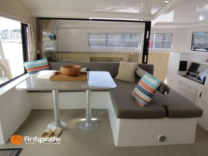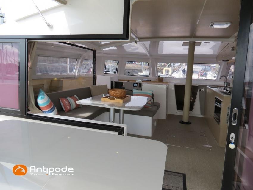 NEEL 43, 2022, first hand, VOLVO D2-50F, 50 hp (500.1 hrs), Bow thruster, Premium package, Interior layout version 1 forward cabin, 2 side cabins , Port cabin close with saloon, 2 single cabins in both forepeack, Alpi interior woodwork, Bolson carpet in saloon & cabins, Mastresses underlays in double cabins, Interior curtains, Kitchen head cupboard, Cocktail table in saloon, Mosquito screens for opening windows and hatches, 2 hulls primary spinnaker winches - Antal XT44, 1 roof winch for genoa and staysail sheets - Antal XT48, Electric manoeuvring winch on roof for halyards and mainsail sheets - Antal XT40, GRP bowsprit, Flexyteek slatted cockpit floor, Flexyteek bathing platform & dinghy craddle, Diner cockpit table , Wheel cover, Wheel station bimini top & enclosure, Cockpit hard top, Cockpit & wheel station cushions - Sunbrella, Cover for wheel pupitre and wheel station cushion, Cockpit chain counter, Electrical lift for dinghy - Antal Line drive + remote control, Full cockpit enclosure, Deck stepped aluminium classic mast and boom, Square top full batten main sail - Incidences, Main sail mast track + batten cars, Single line main sail reefing system (x 2), Main sail lazy bag, Main sail lazy jacks, Genoa roller furling with above deck drum - Facnor LS180, Furling genoa - Incidences, Furling staysail with halyard 2.1 & furler - Incidences, Assymetric spinnaker riggings, Asymmetric spinnaker - 115 sqm, Spinnaker snuffer, Furlable gennaker - Technique Voile, Code 0 on furler - Intuitive Sails, In board autopilot - B&G NAC3, Autopilot pupiters at chart table and wheel station, Wheel station repeater - B&G Triton 2, Nav station repeater - B&G Triton 2, GPS and chartplotter (wheel station) - B&G 12 pouces, Radar with radome radar fitted on mast - B&G broadband 4G, AIS Transponder CLASS B (emission and reception) & Silent mode, DSC VHF at chart table - B&G V60, Handheld VHF - Icom, Fusion MS AV 750 audio system+ 4 speakers, Distress beacon, Fridge unit 12 V (front opening door), Freezer 12 V, Water heater - 60 liters - 220 V and engine heat exchanger, 2 burners cooker + oven & toaster, Plancha in cockpit, 2 x Bow thruster batteries & charger, Service batteries - Lithium - 2 x 200Ah, Dual charger / Inverter - 2000W - Victron Energy, Interior 220 V / 12 V / USB sockets, Battery controller, WEBASTO heating system, Holding tank, Electric toilets, Solar panels - Solbian 2 x 155W , Hot and cold cockpit shower, Leds navigation lights, Leds interior & cockpit lights , 8 men liferaft & safety equipments, Kobra anchor + chain, Fenders and warps, Dinghy + Suzuki 4 str 2.5Hp outboard engine, Located Brittany. For more information or to make an appointment for a visit, contact : Jean-Baptiste Lemaire +33 6 10 25 00 03 - jb@antipode-yachts.com