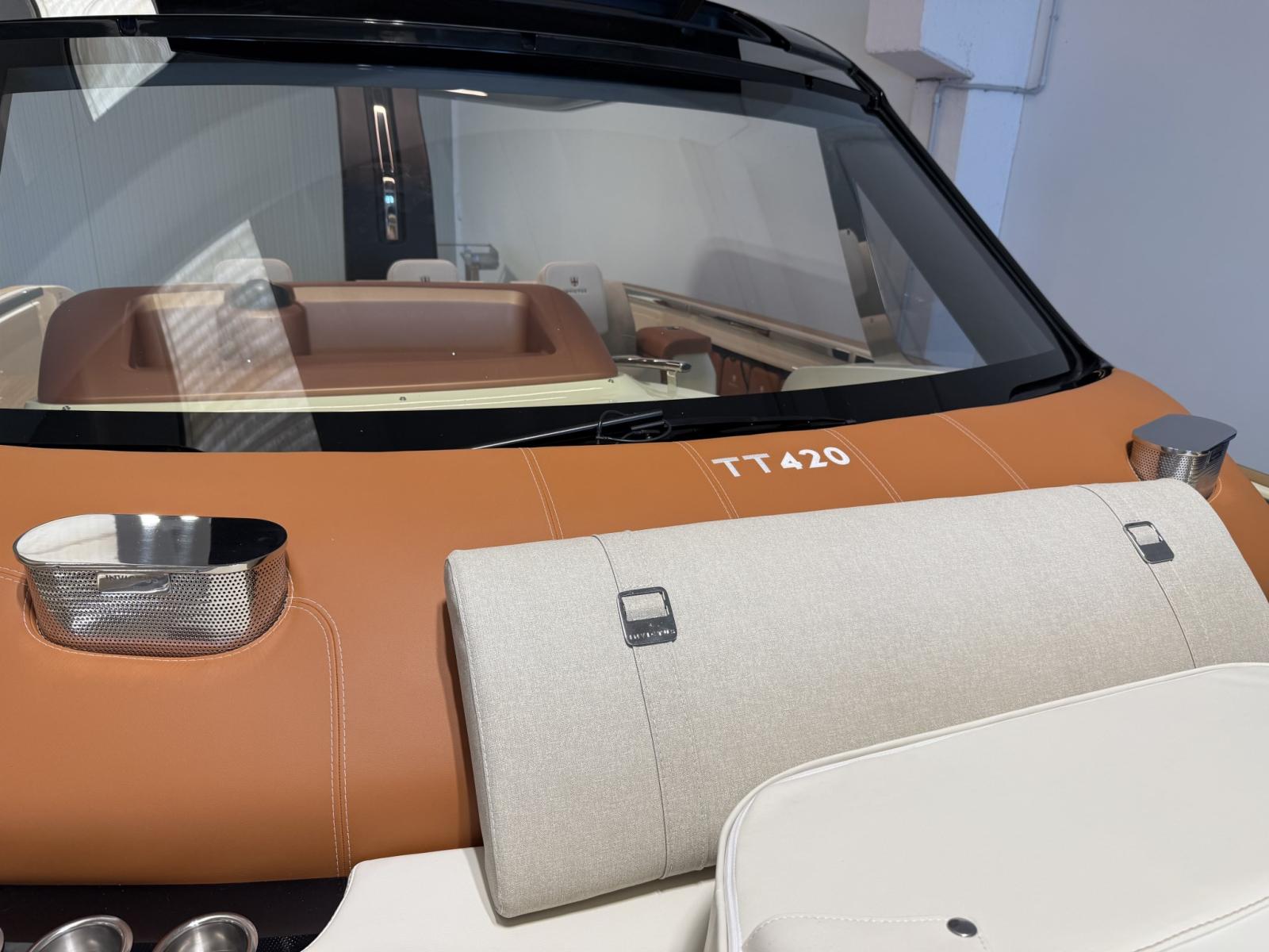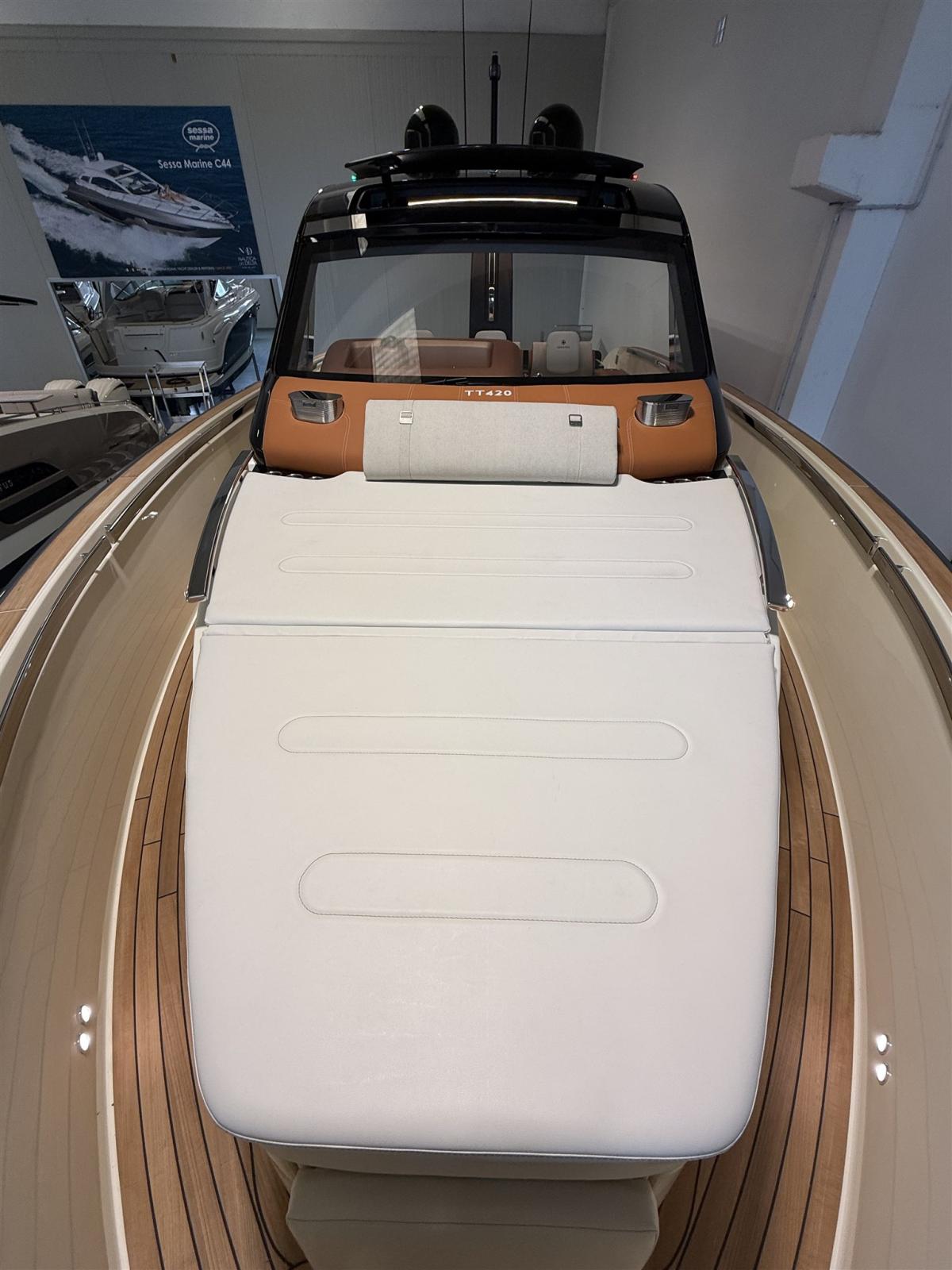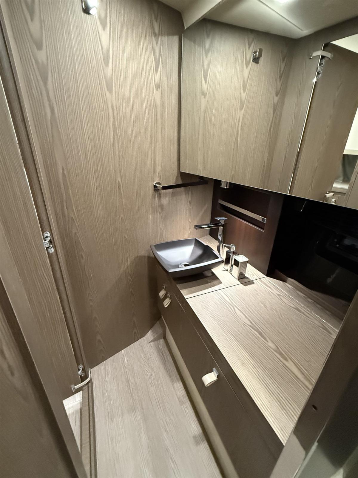 Engine Alarm, Electric Engine Compartment Opening, Auto Dynamic Trim Interceptor, Water pressure pump, Teak Side Decks, Special Colour (Spectrum blue), Deck Shower, Electric Flaps (Interceptor), Tender Garage, Hard top (carbonio), Fire Extinguishing System, Flaps Indicators, Washbasin in the cockpit, Courtesy Lights, Gangway (idraulica a sfilo), Platform (affondabile), Automatic Bilge Pump, Teak Cockpit, Shorepower connector, Electric Windlass, swimming ladder, cockpit table, Horn.