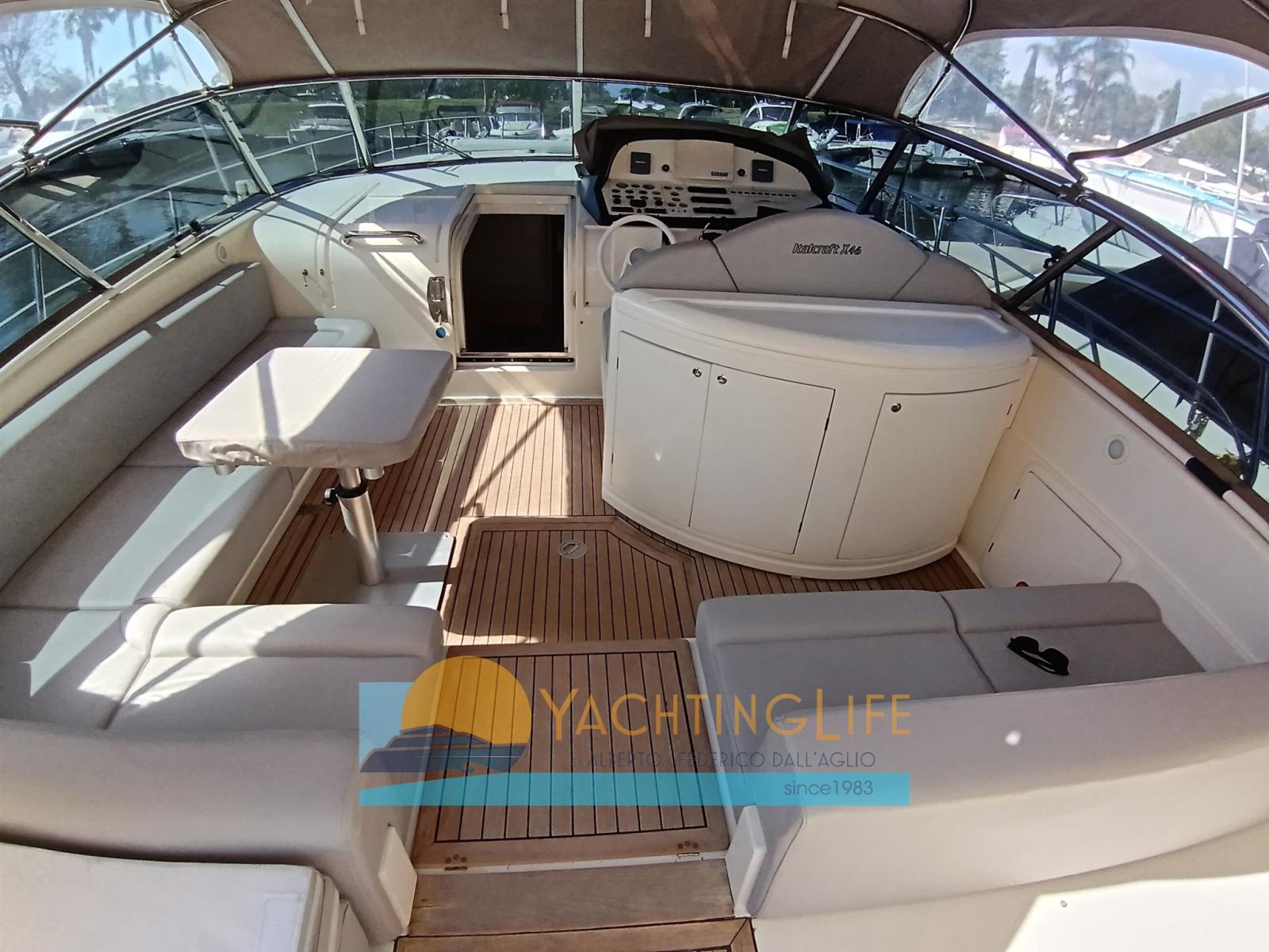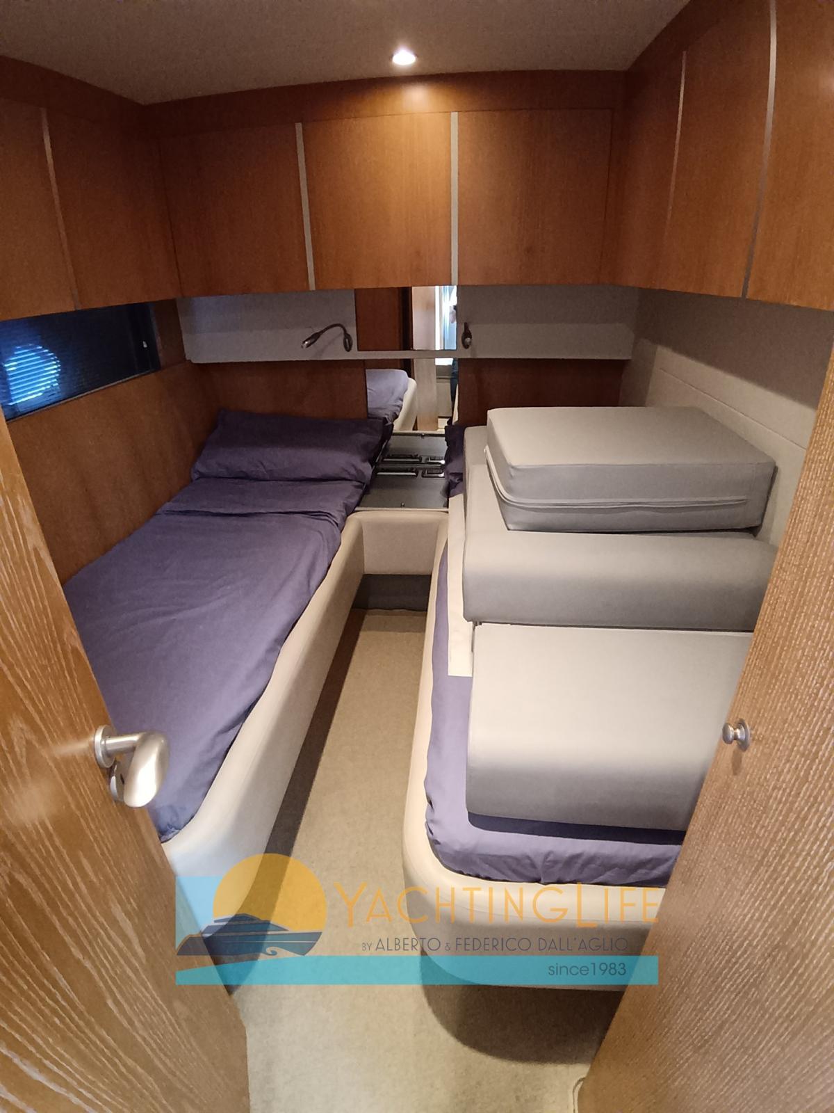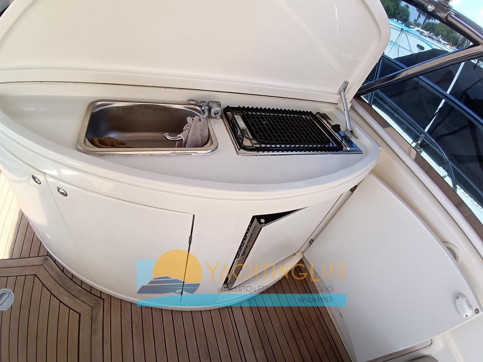 Engine Alarm, Bilge Alarm, Electric Engine Compartment Opening, Water pressure pump, Deck Shower, Hydraulic Flaps, Flaps Indicators, Courtesy Lights, Gangway (idraulica), Platform, Automatic Bilge Pump, Teak Cockpit, Shorepower connector, Voltage Rectifier, Electric Windlass, swimming ladder, Saddles for tender, cockpit table, Tender, Horn, Stern Winches.