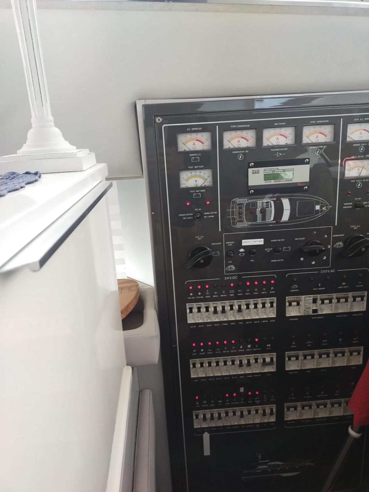 Engine Alarm, Bilge Alarm, Alternator, Water pressure pump, 4 Batteries, Deck Shower, Twin Steering, Directional Spotlight, Hydraulic Flaps, Hard top, Fire Extinguishing System, Anchor Chain Washdown, Courtesy Lights, Underwater lights, Fenders, Gangway (Idraulica Nuova 2024), Platform (Allungata), Automatic Bilge Pump, Deck Wash Pump, Teak Cockpit, Shorepower connector, Water harbor connector system, Voltage Rectifier, Electric Windlass, swimming ladder, Horn.