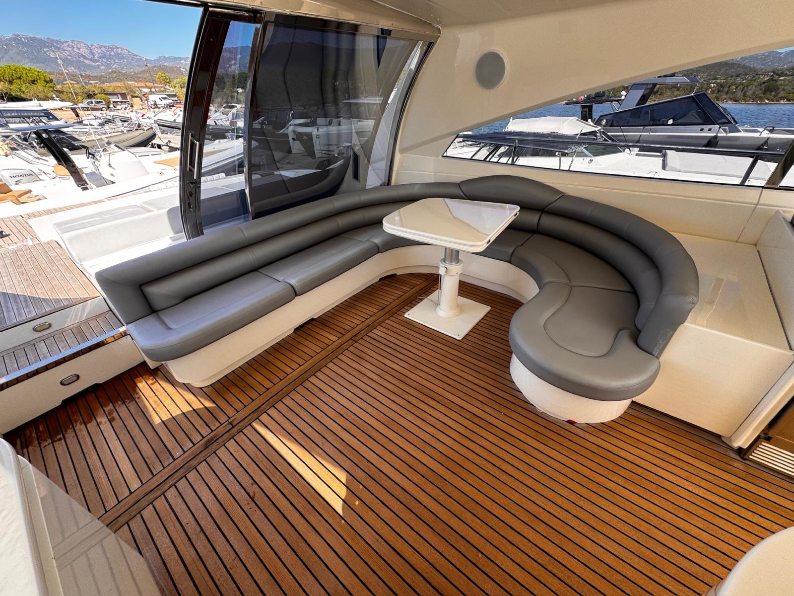 Huge aft sundeck + second sundeck at the bow protected by a Bimini