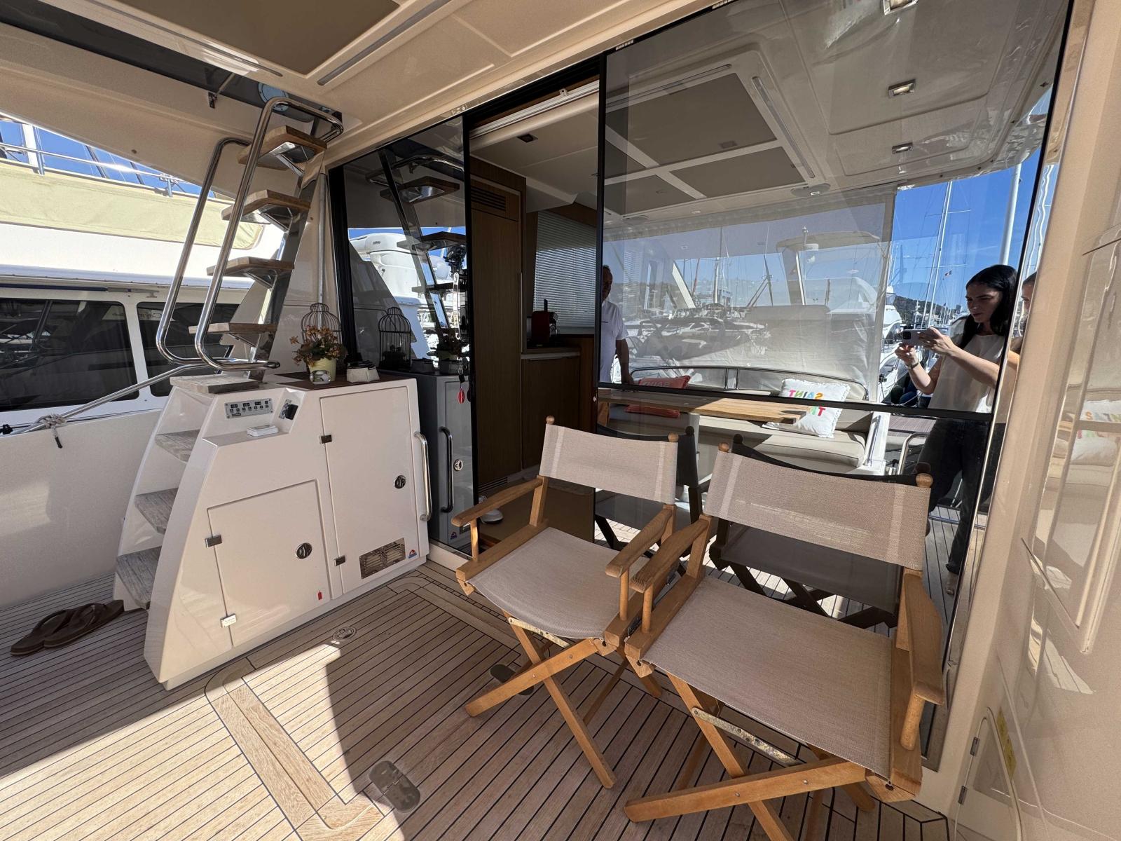The hydraulic platform makes it easy to swim or store a dinghy, the radar keeps you safe, and the crew cabin is ideal for long stays. Finally, we can also offer you a berth, a rare and valuable advantage.
