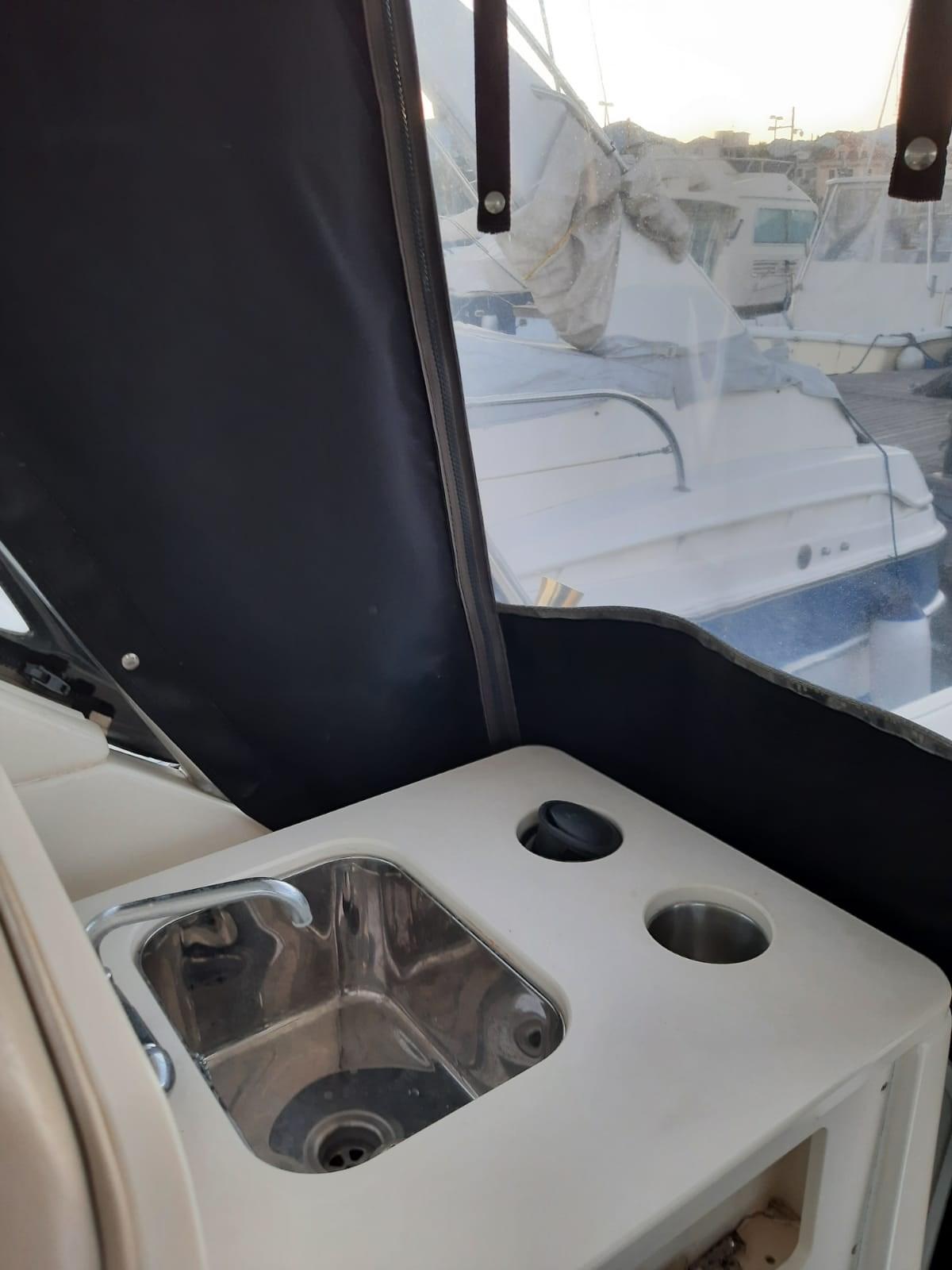 Engine Alarm, Water pressure pump, 4 Batteries (2 sostituite 2022 / 2 sostituite 2021), Special Colour (2023 wrapping bianco- in origine bordeaux), Deck Shower, Hydraulic Flaps, Hard top, Washbasin in the cockpit, Courtesy Lights, Entry door, Shorepower connector, Electric Windlass, swimming ladder, Living Room Foldable Table, Horn.