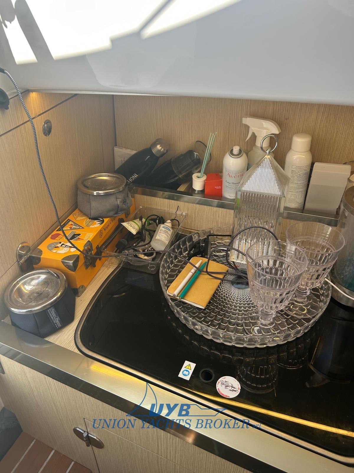 Engine Alarm, Bilge Alarm, Water pressure pump, Shore power cable, Special Colour, Guard rail, Manual Bilge Pump, Entry door, Electric Windlass (con telecomando), swimming ladder, cockpit table, Horn.