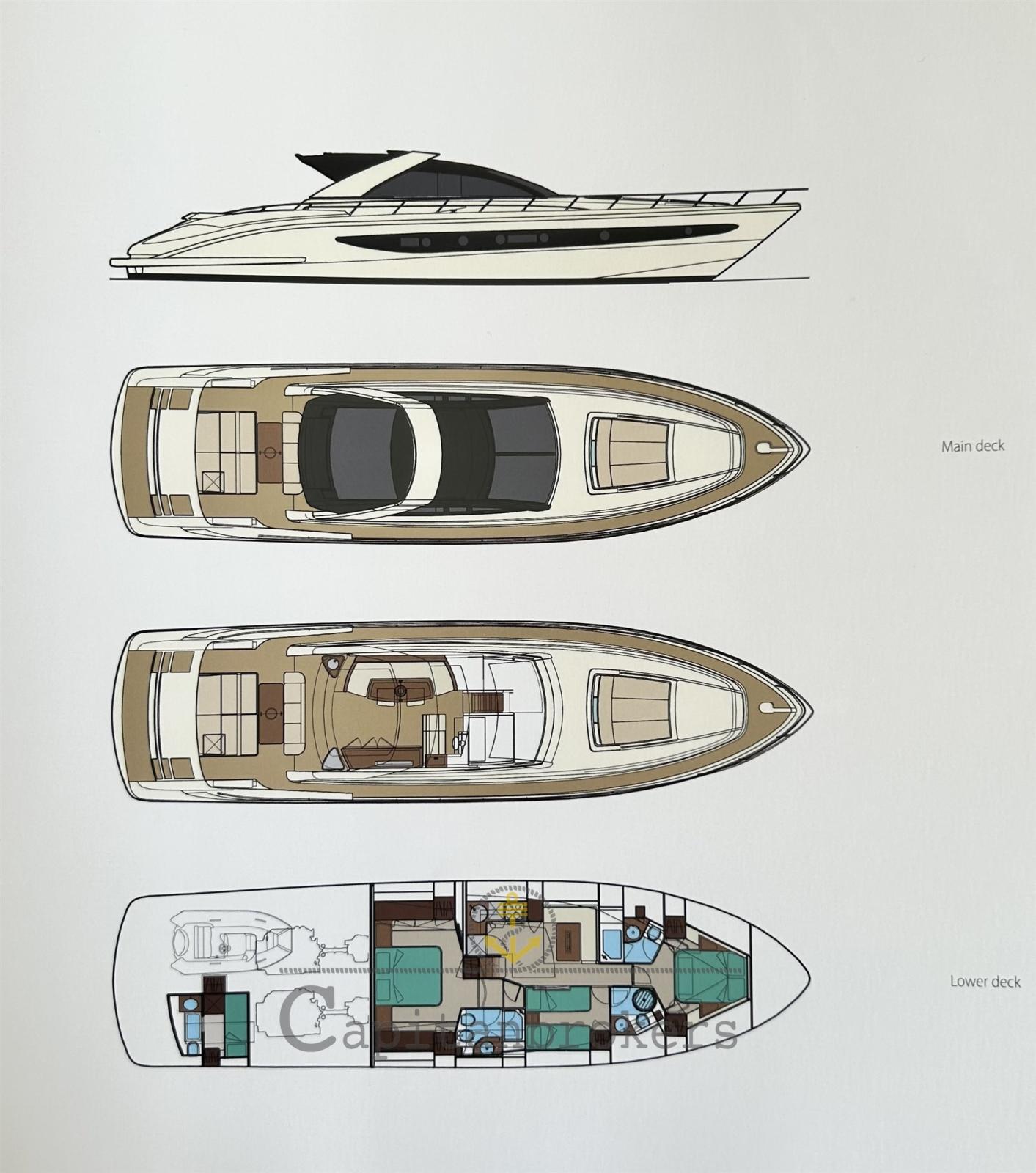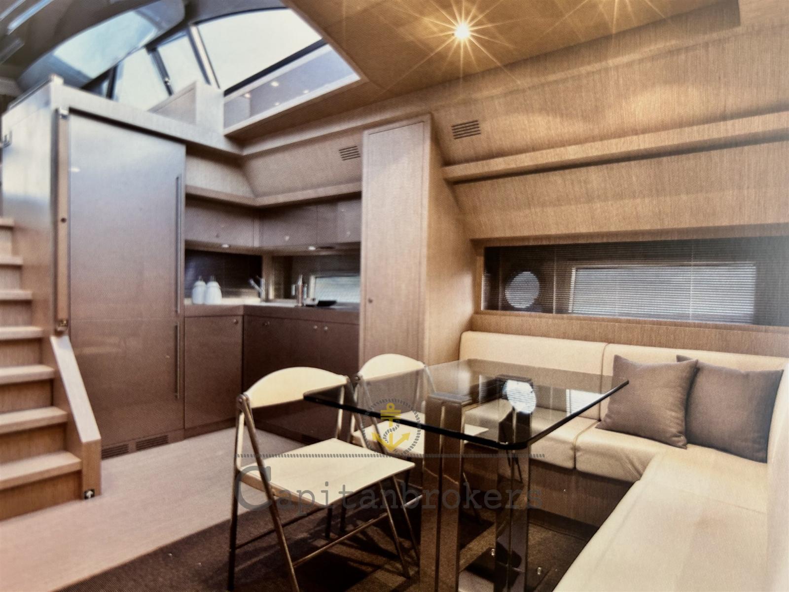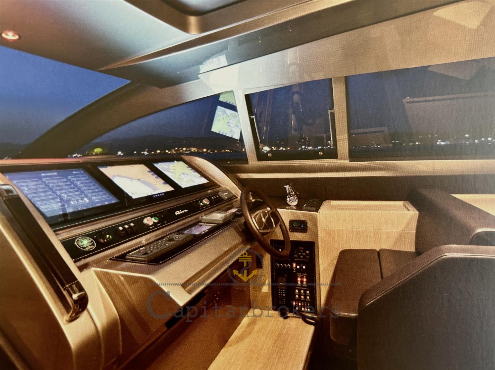 Engine Alarm, Bilge Alarm, Deck Shower, Electric Flaps, Tender Garage (Idraulico), Hard top (con apertura elettrica), Flaps Indicators, Anchor Chain Washdown, Washbasin in the cockpit, Gangway (idraulica telescopica), Platform (swimplatform), Automatic Bilge Pump, Manual Bilge Pump, Entry door, Teak Cockpit, Shorepower connector, Water harbor connector system, Electric Windlass, swimming ladder (idraulica), cockpit table, Tender (Riva modello Avon Idrogetto), 3 Winch Electric (n.1 prua, n.2 poppa).