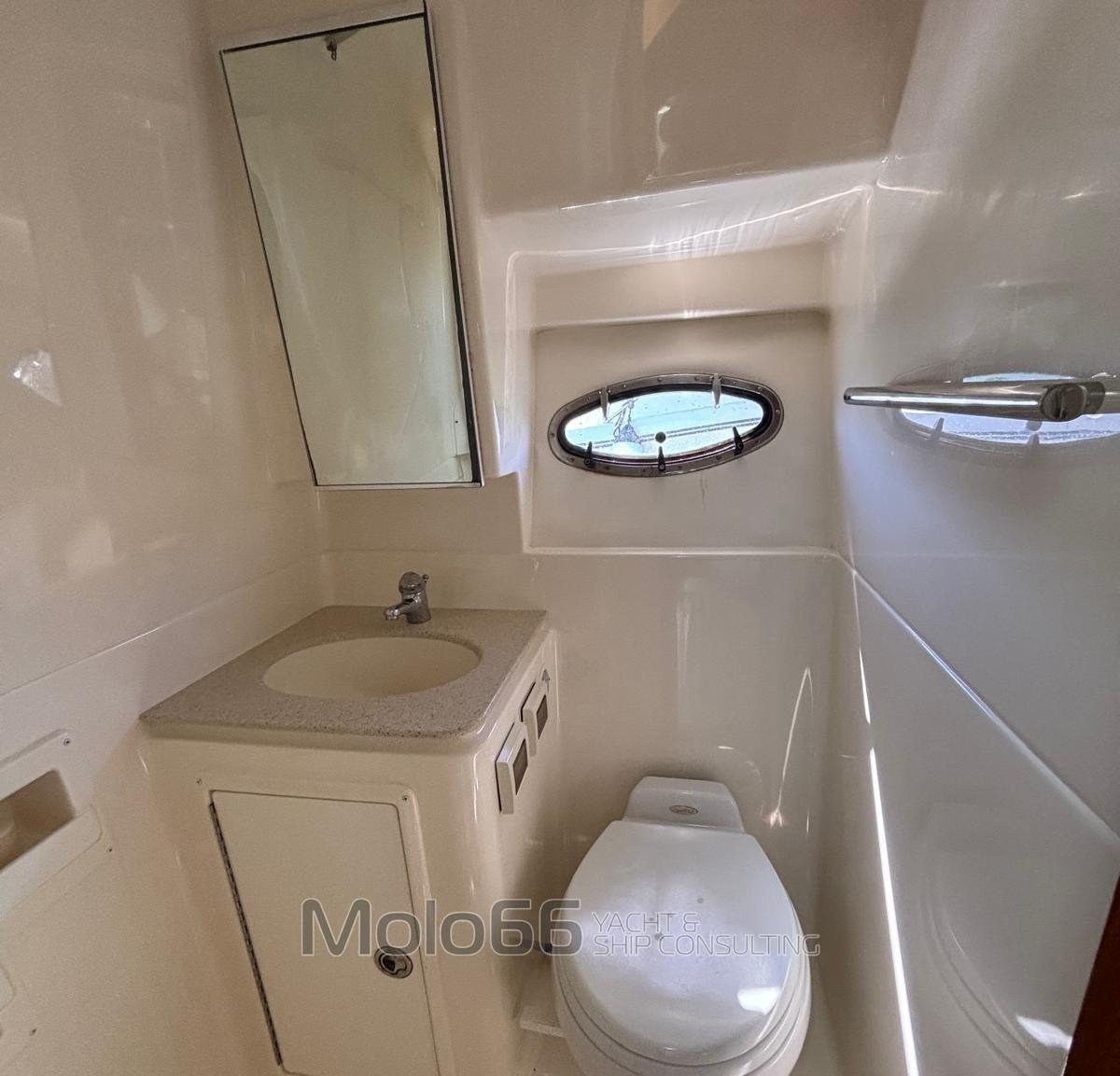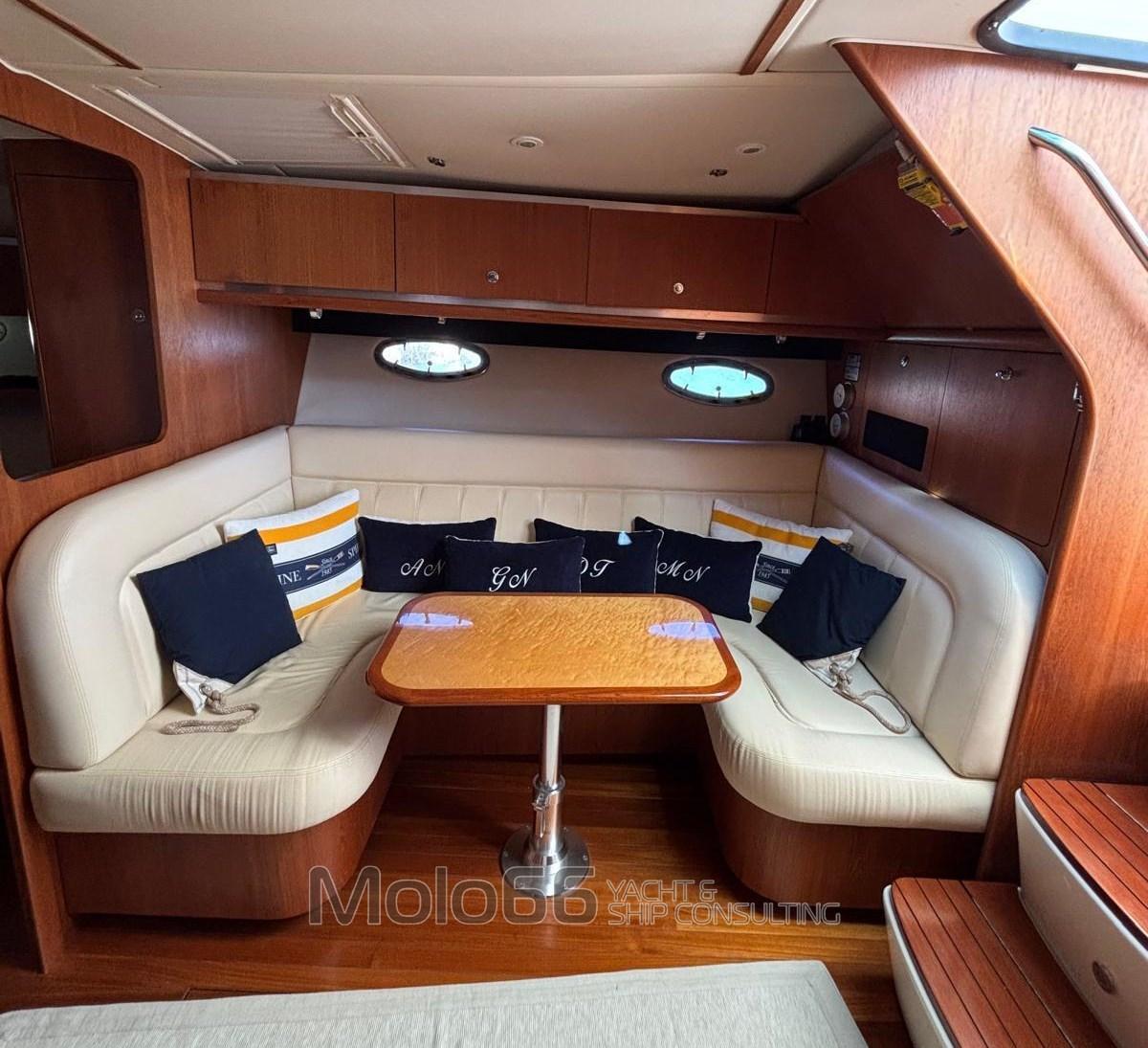 Fume/Gas Detector, Engine Alarm, Bilge Alarm, Electric Engine Compartment Opening, Water pressure pump, Special Colour (Blu Navy), Deck Shower, Headlights fixed on the stem (illuminazione a led), Directional Spotlight, Hydraulic Flaps, Hard top, Fire Extinguishing System, Anchor Chain Washdown, Washbasin in the cockpit, Courtesy Lights, Underwater lights (Oceanled), Platform, Automatic Bilge Pump, Seawater Pump, Entry door, Shorepower connector, Water harbor connector system, Electric Windlass, swimming ladder, Horn, Bow Winches.