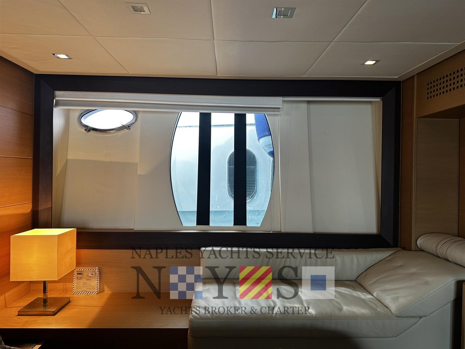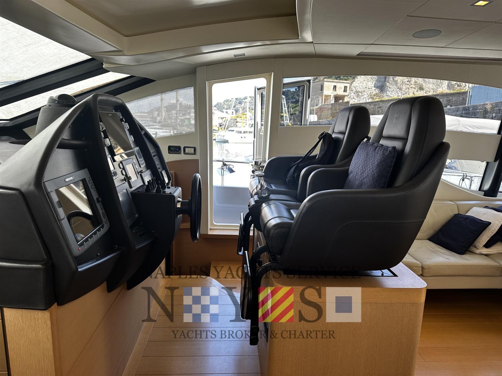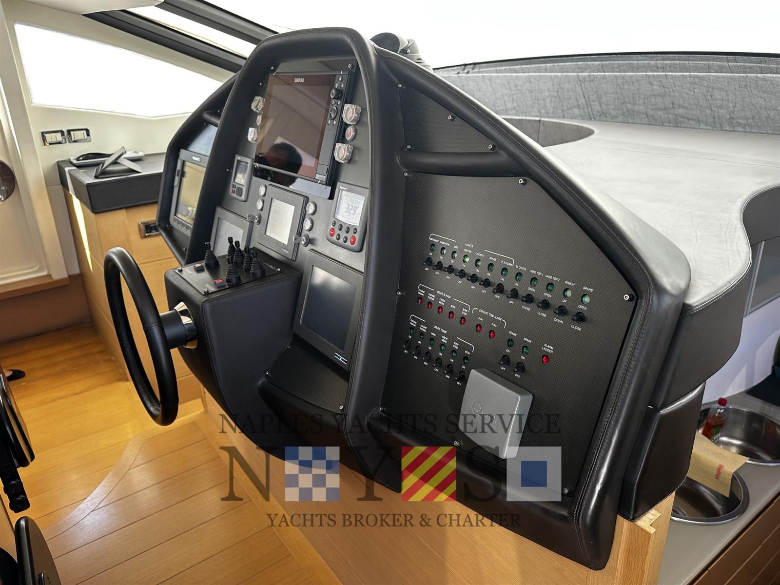 Engine Alarm, Water pressure pump, Folding cleats, Hard top (Apertura parziale elettrica), Teak deck (Fuga Bianca), Teak Cockpit, Shorepower connector, Voltage Rectifier, Electric Windlass.