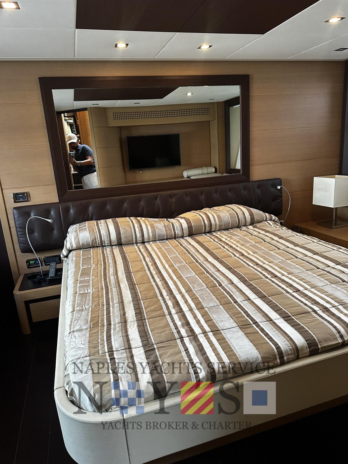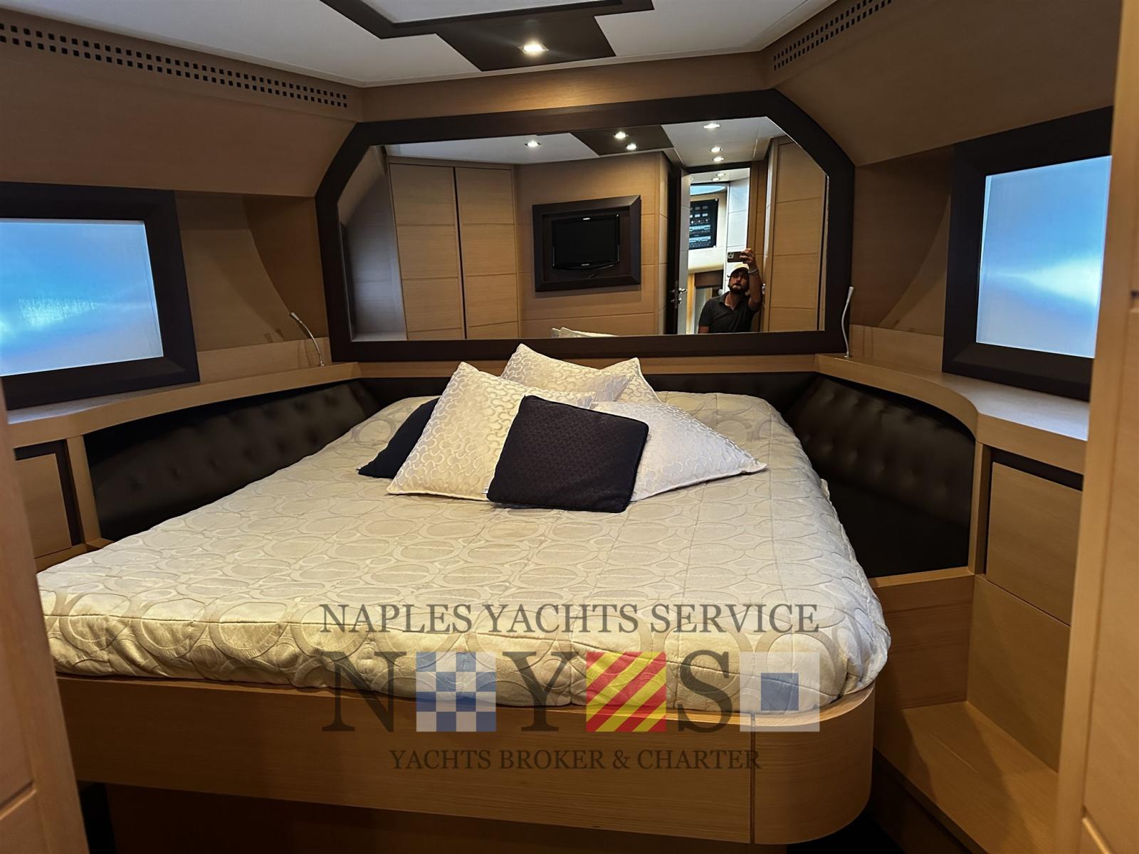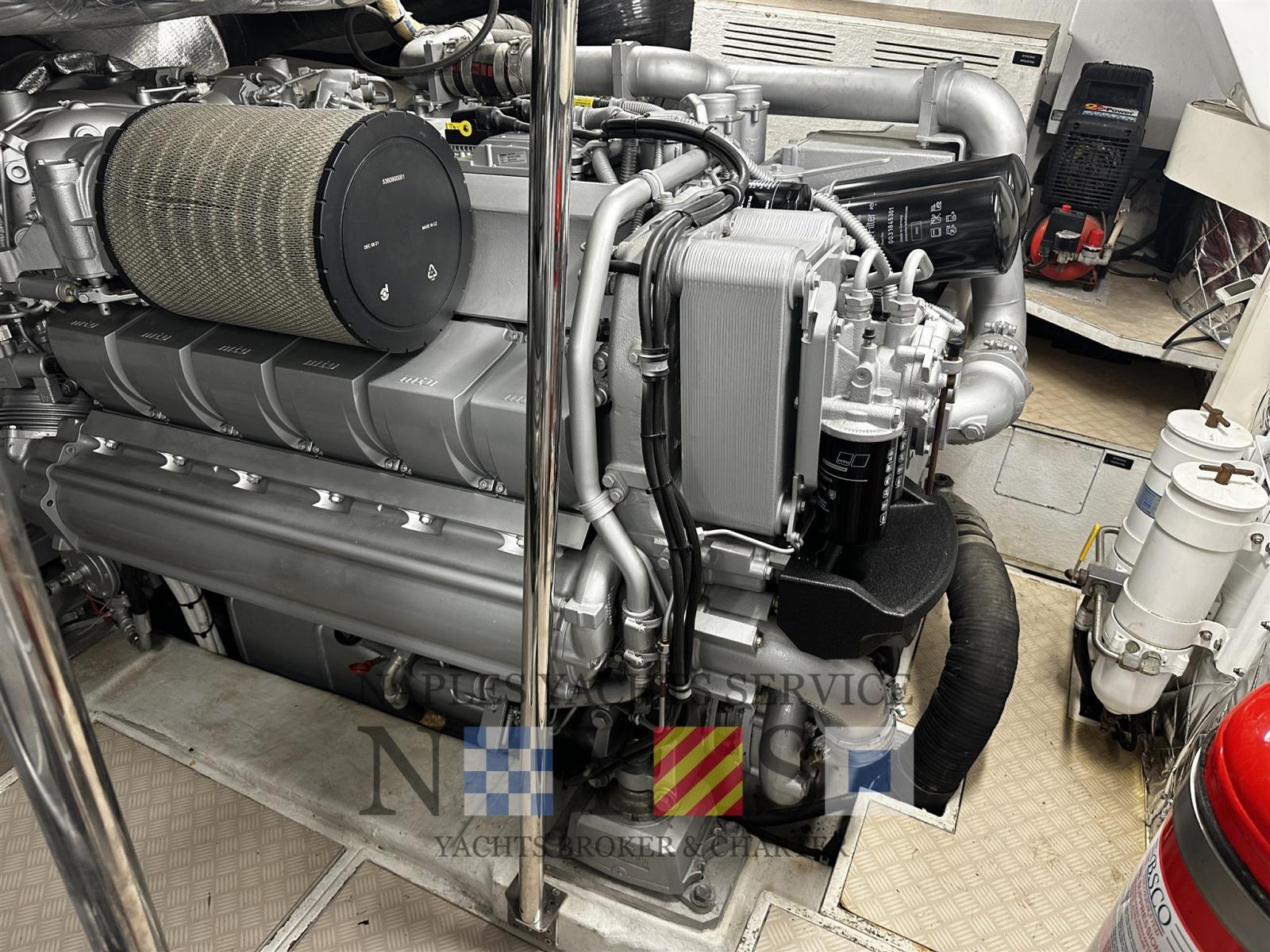 Engine Alarm, Water pressure pump, Folding cleats, Hard top (Apertura parziale elettrica), Teak deck (Fuga Bianca), Teak Cockpit, Shorepower connector, Voltage Rectifier, Electric Windlass.