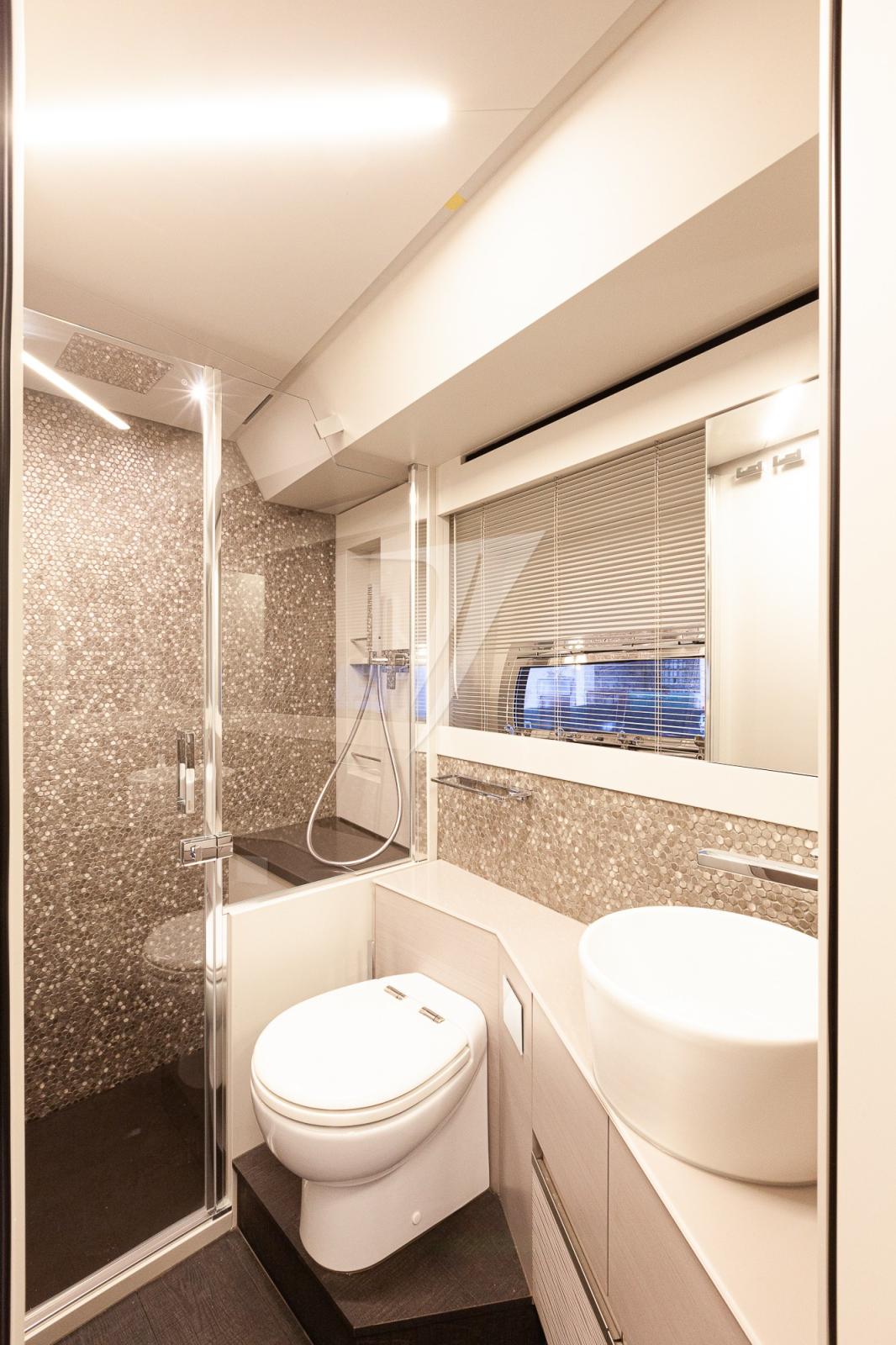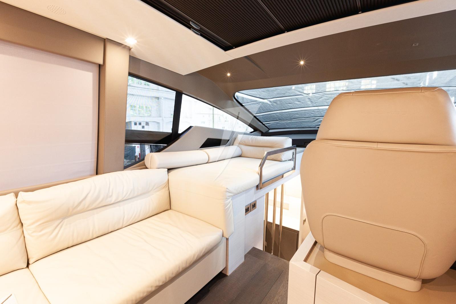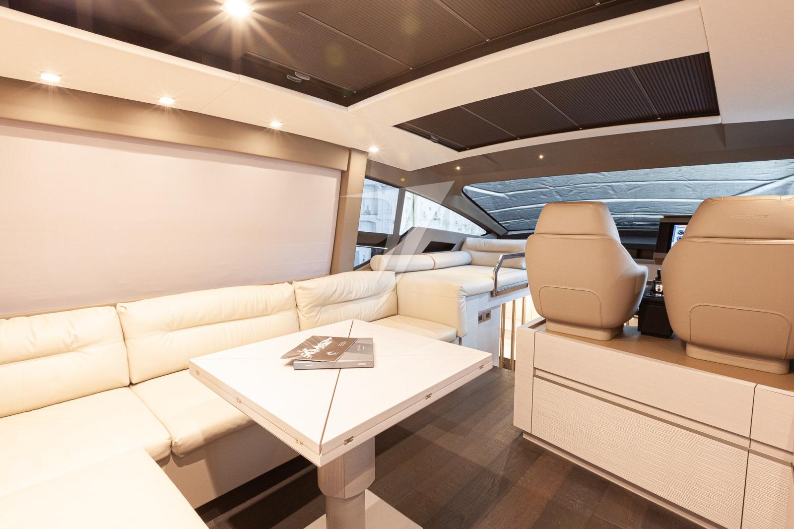 Fume/Gas Detector, Engine Alarm, Bilge Alarm, Water pressure pump, Auto-Trim, Folding cleats, Teak Side Decks, Deck Shower, Electric Flaps, Tender Garage, Hard top, Fire Extinguishing System, Compressor Air System, Flaps Indicators, Anchor Chain Washdown, Washbasin in the cockpit, Courtesy Lights, Underwater lights, Gangway, Entry door, Teak Cockpit, Shorepower connector, Water harbor connector system, Electric Windlass, swimming ladder, Stabilizers (Seakeeper), cockpit table, Living Room Foldable Table, guard rails with gates, Horn, Stern Winches, Bow Winches.