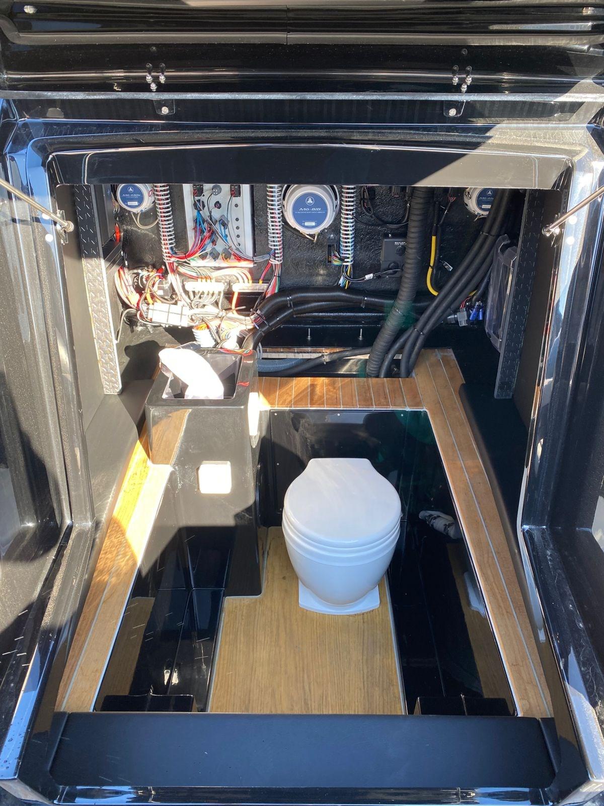 Electric Sea Water toilette with 35L holding tank under console, sink, overboard discharge system (5.200 €)