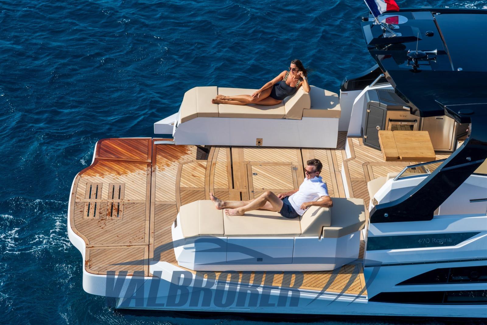 FIM Regina 470 a unique and innovative yacht MADE IN ITALY. He won the "revelation of the year" award at the 2023 Cannes boat show. DEMO BOAT. Make the most of outdoor spaces, thanks to movements at the stern and bow. The bow sundeck, by translating laterally, creates a real convivial area in the bow. The aft lounge guarantees great versatility, thanks to the possibility of configuring the outdoor dinette in different ways. The aft cockpit can be expanded through a sundeck division mechanism: this creates a spacious central area, which ensures maximum livability.