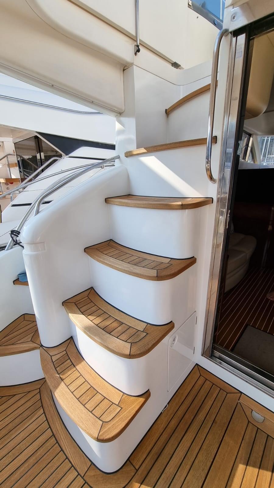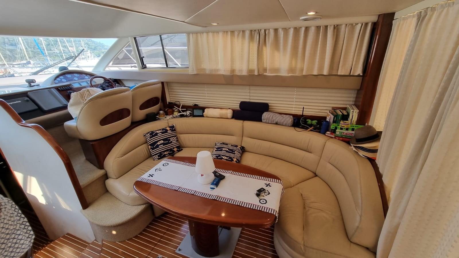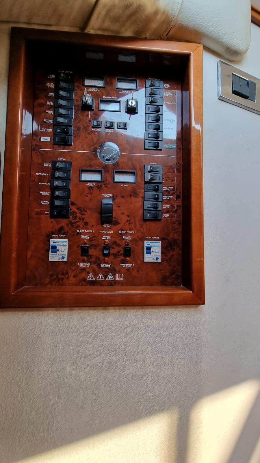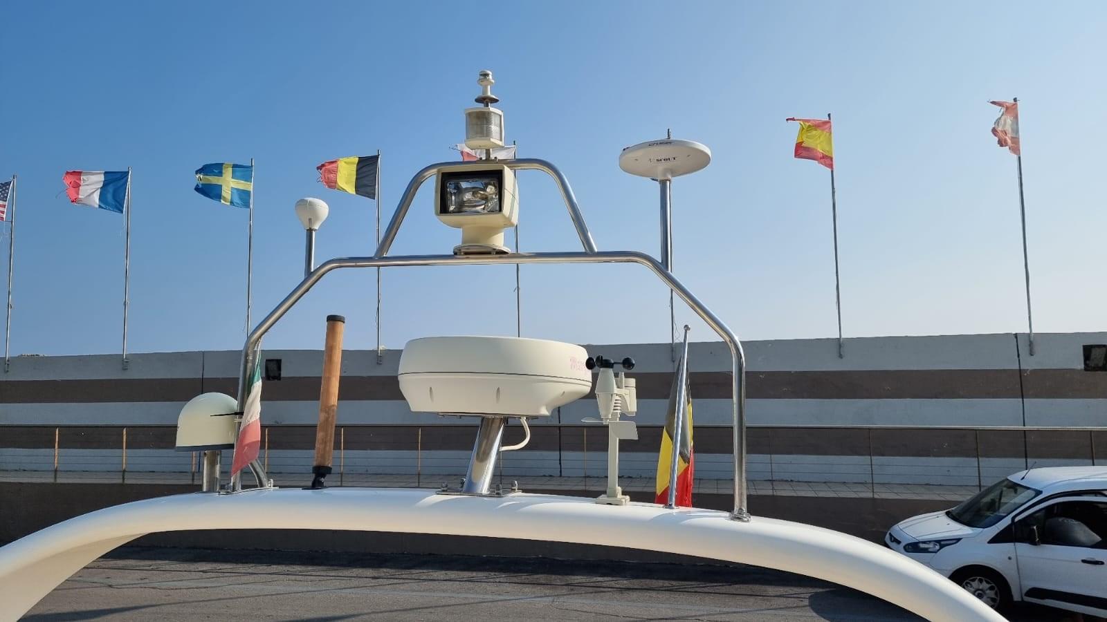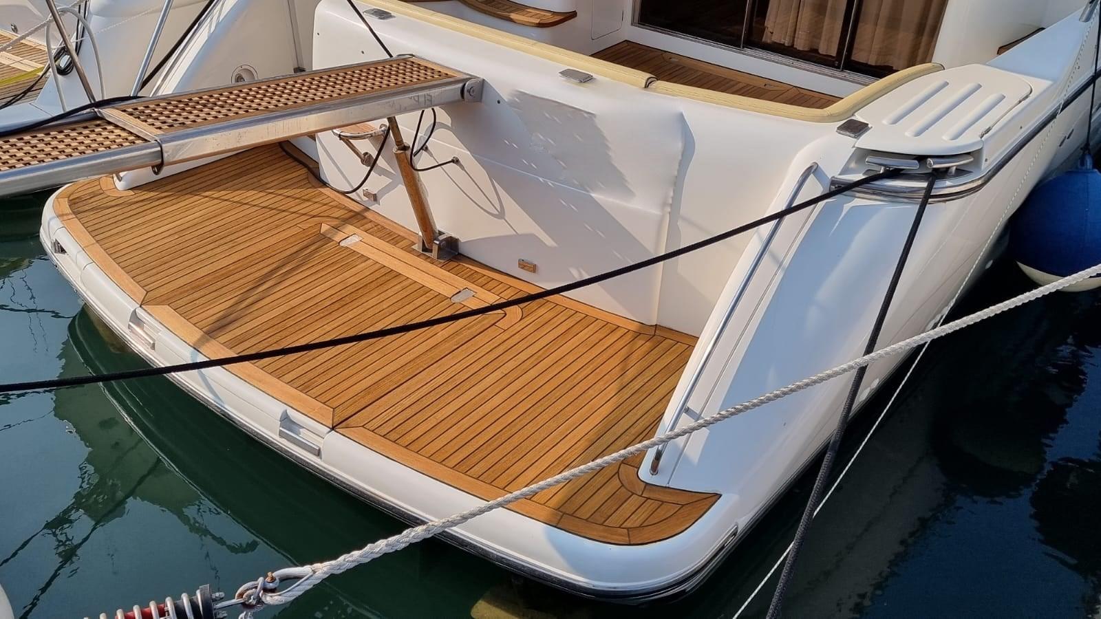 Engine Alarm, Bilge Alarm, Water pressure pump, 6 Batteries (Sostituite 2020 Gel), 2 Battery charger (Servizi e batt. Gtuppo), Deck Shower, Twin Steering, Directional Spotlight, Hydraulic Flaps, Fire Extinguishing System (A gas), Flaps Indicators, Anchor Chain Washdown, Courtesy Lights, Gangway (Idraulica), Platform, Automatic Bilge Pump, Manual Bilge Pump, Entry door, Teak Cockpit (Nuovo 2019), Shorepower connector, Voltage Rectifier, Electronic instrumentation repeater, Rollbar, Electric Windlass (Nuovo 2021), swimming ladder, Tender (2.50 mt con motore honda 4t nuovo 2021), guard rails with gates, Bow Winches.