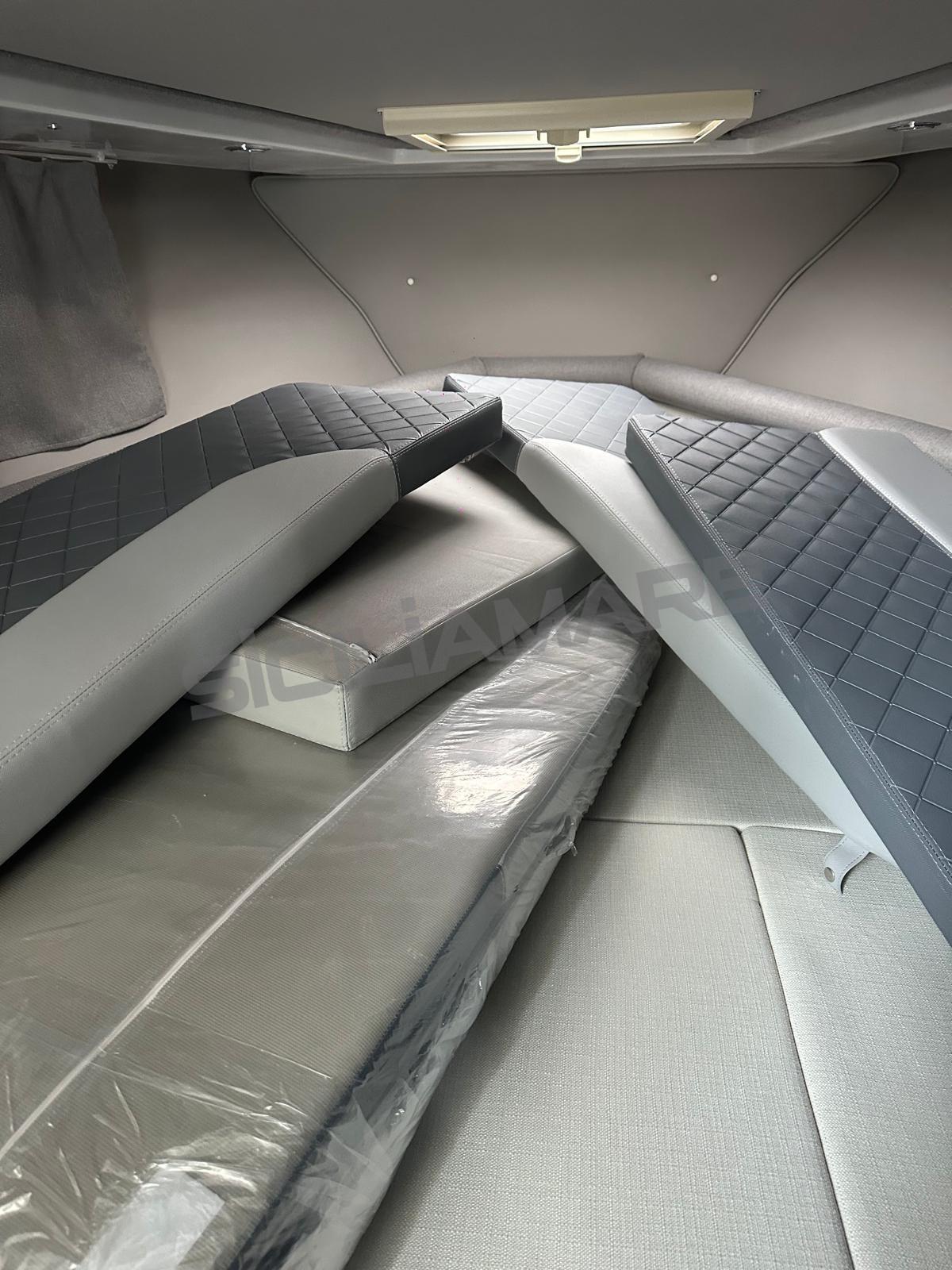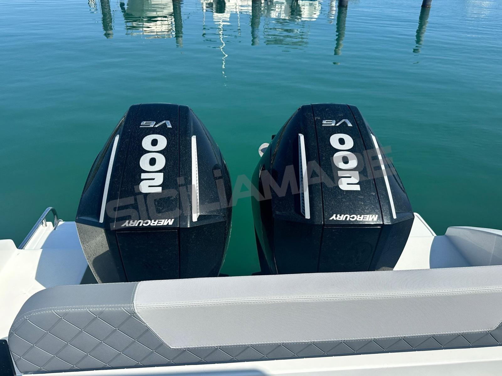 Water pressure pump, 4 Batteries (2 servizi + 2 motori), Deck Shower, Hard top, Shorepower connector, Electric Windlass, swimming ladder.