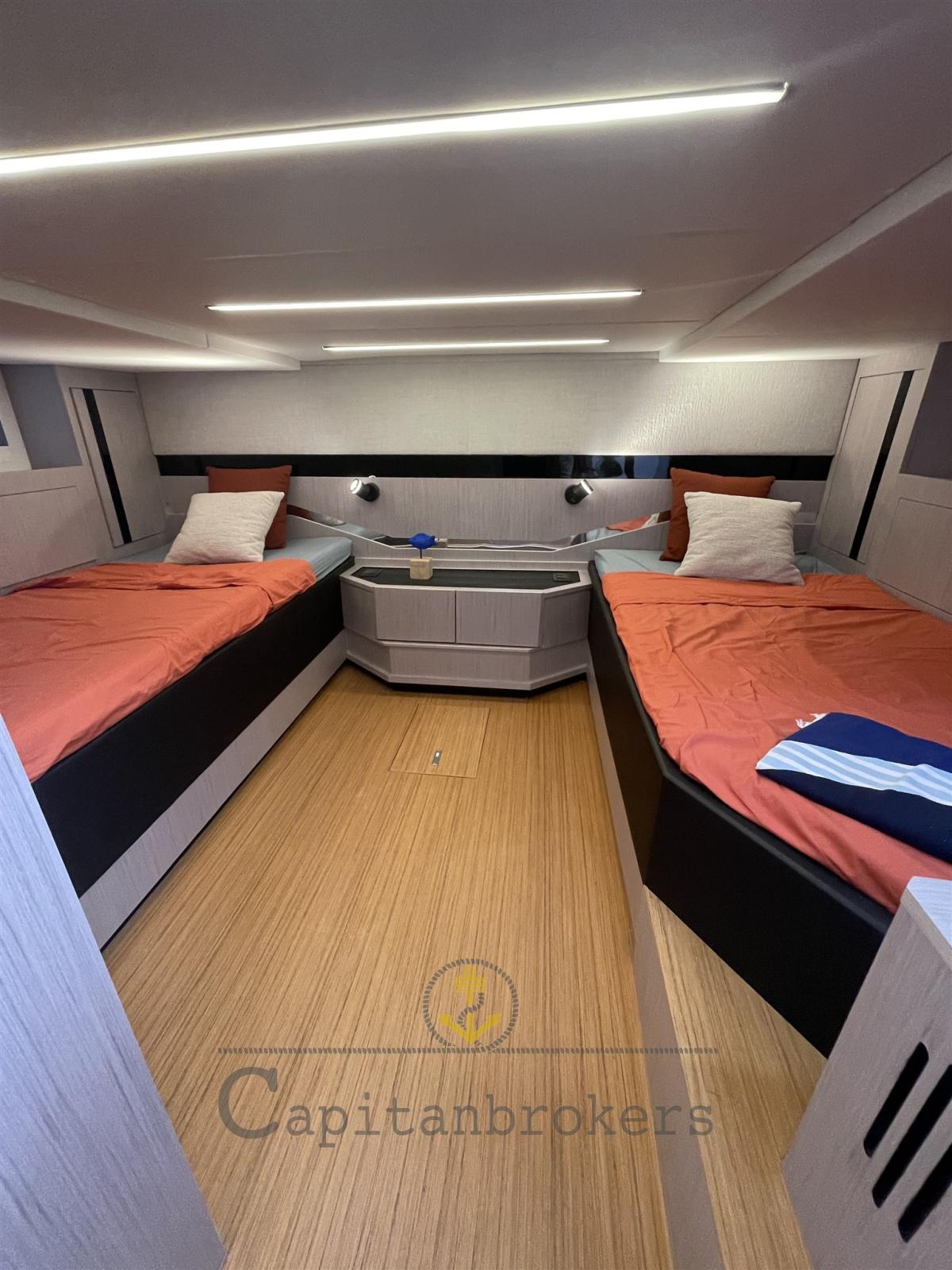 Engine Alarm, Bilge Alarm, Water pressure pump, 5 Batteries (x 120 ah), Deck Shower, Bow Thruster (AV max power ct80), Anchor Chain Washdown, Platform (idraulica up-down), Automatic Bilge Pump, Manual Bilge Pump, Teak Cockpit, Shorepower connector, Electric Windlass, swimming ladder (in acciaio), cockpit table.