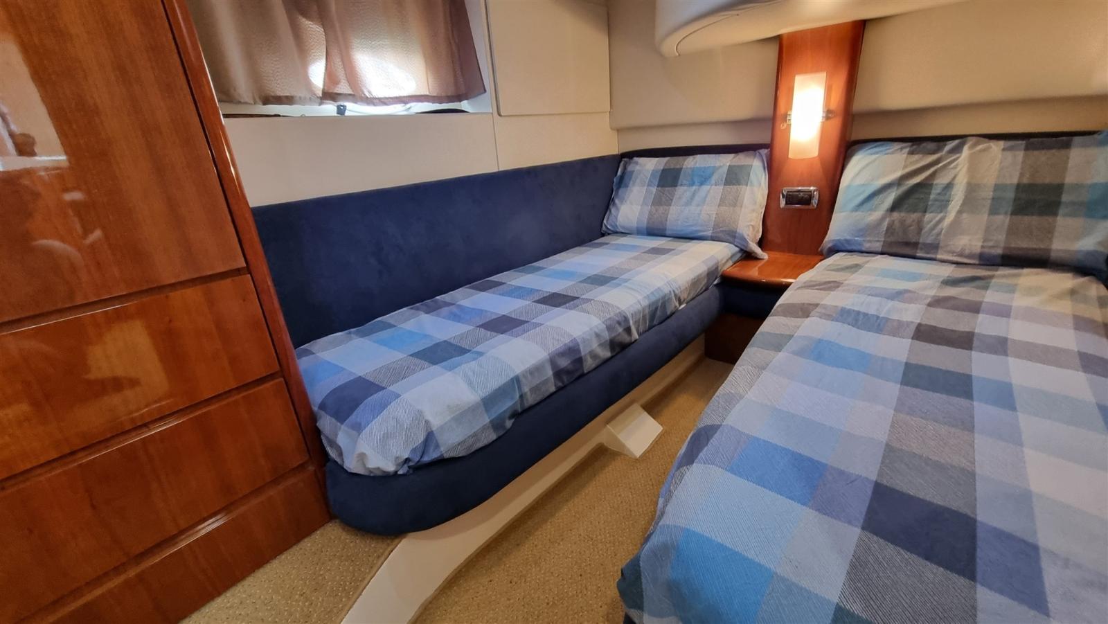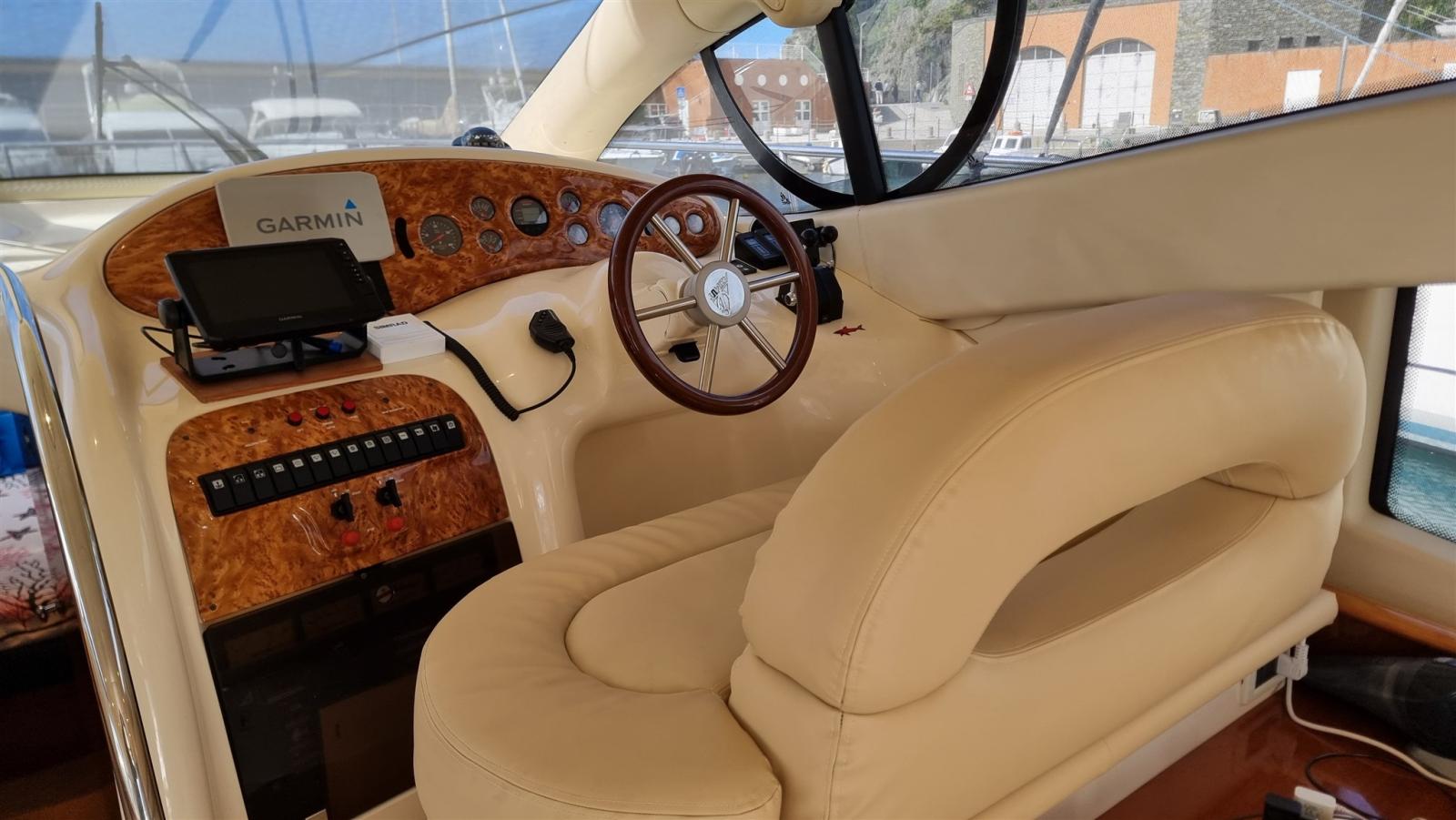 Fume/Gas Detector, Engine Alarm, Bilge Alarm, Water pressure pump, Deck Shower, Twin Steering, Hydraulic Flaps, Fire Extinguishing System, Flaps Indicators, Courtesy Lights, Gangway, Automatic Bilge Pump, Manual Bilge Pump, Entry door, Teak Cockpit, Shorepower connector, Voltage Rectifier, Rollbar, Electric Windlass, swimming ladder, cockpit table, Horn.