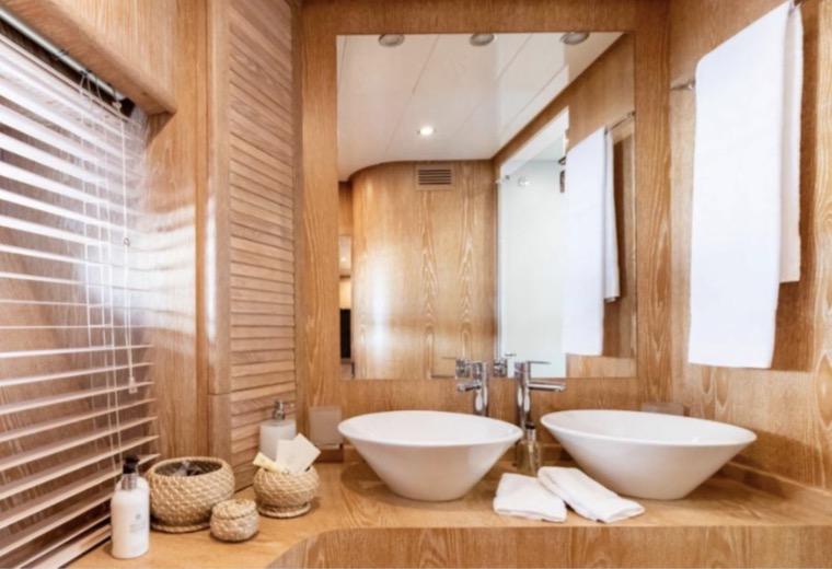 Light-filled interiors feature a minimalist and elegant design, accommodating up to 9 guests in 4 well-appointed staterooms, each with ensuite bathrooms. Crew quarters for 3 provide professional service and added privacy for guests.