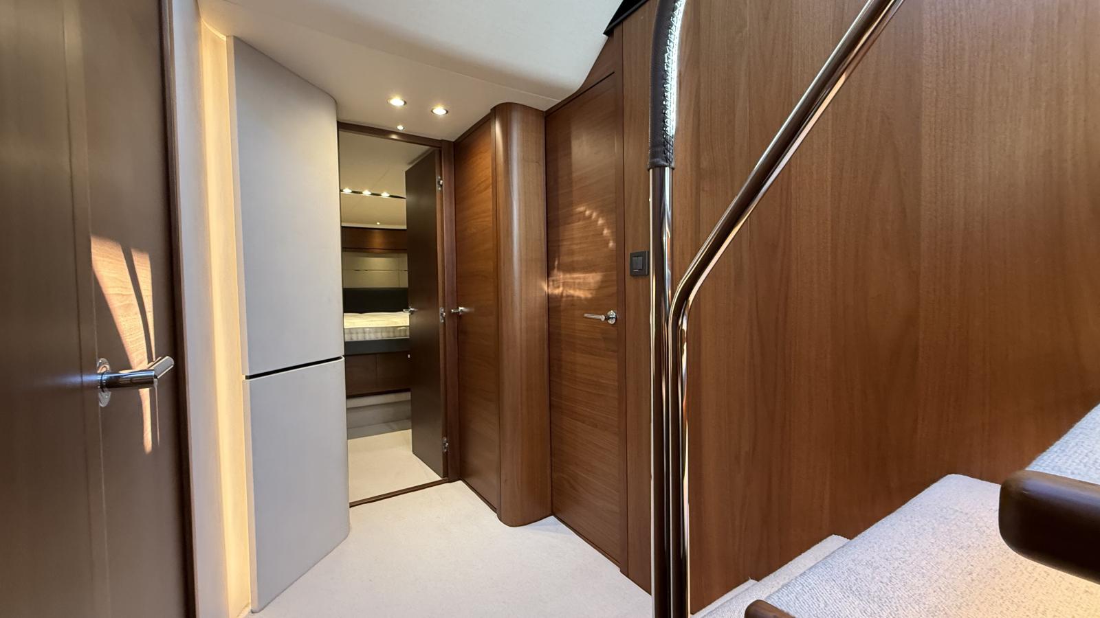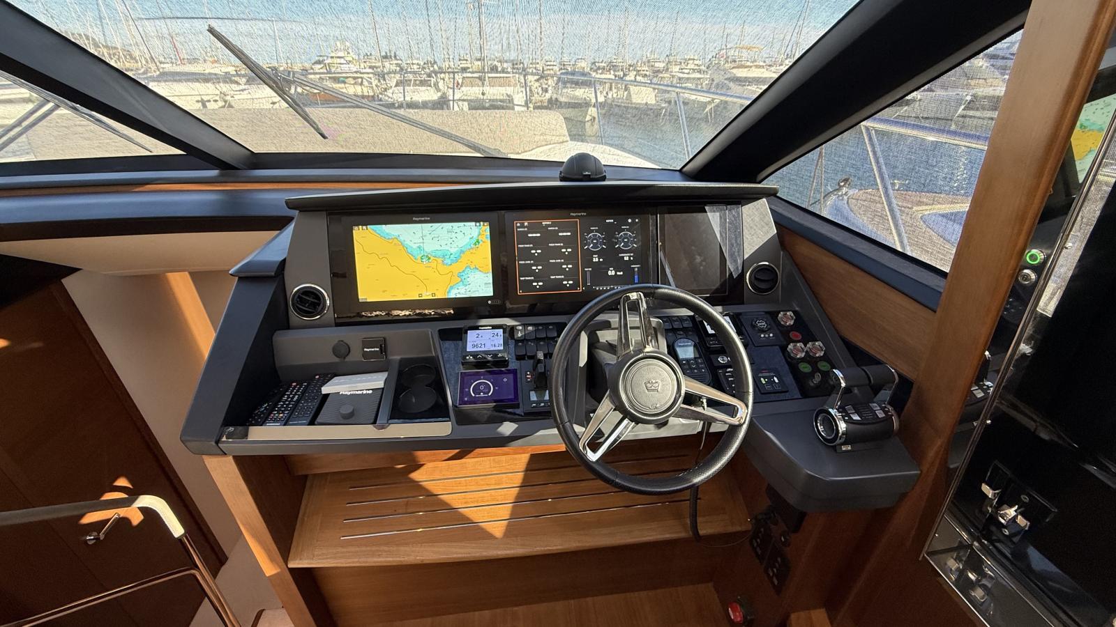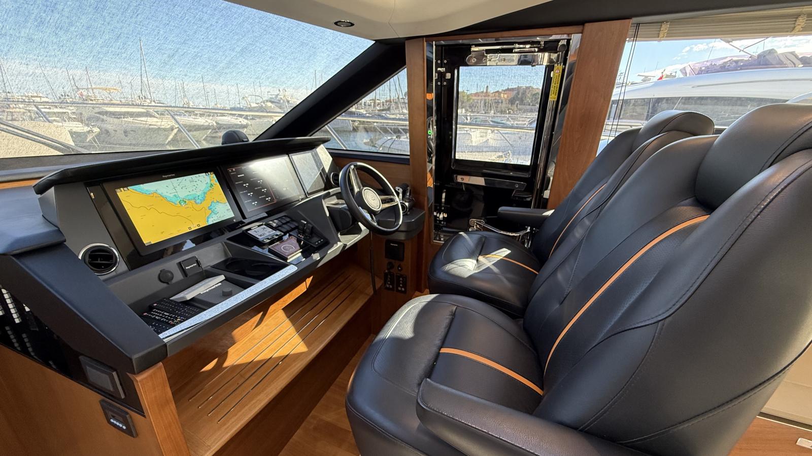 This Princess S65 is a striking example of one of the brand’s most popular sportbridge models, blending performance, comfort, and timeless British design. Powered by twin MAN V12 1400 hp engines, she reaches an exhilarating top speed of 38 knots and cruises smoothly at 28 knots.