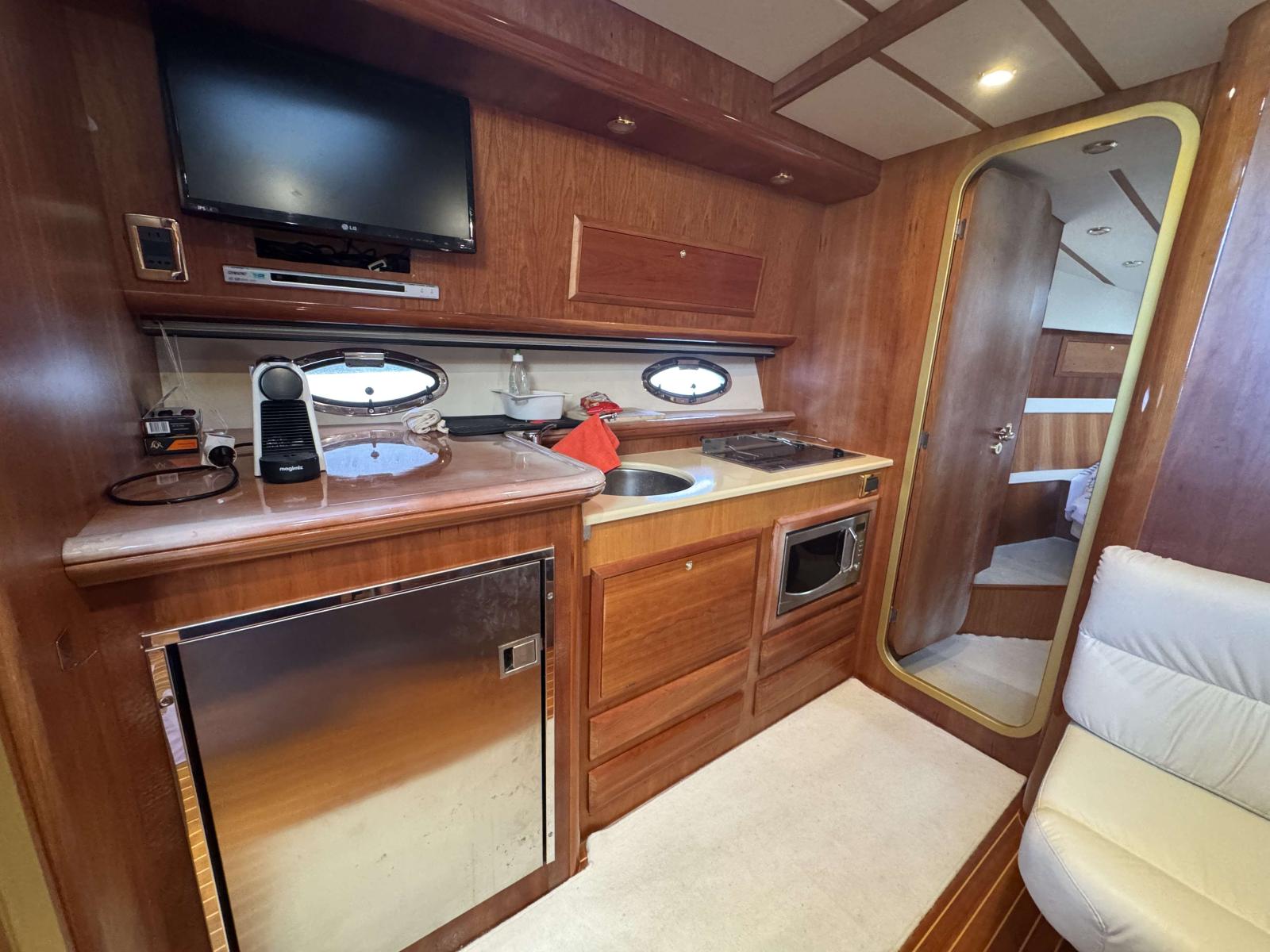 Its large, spacious and functional tender garage is a major asset, rarely found on boats of this size. It makes boarding and storage easier and contributes greatly to comfort on board.