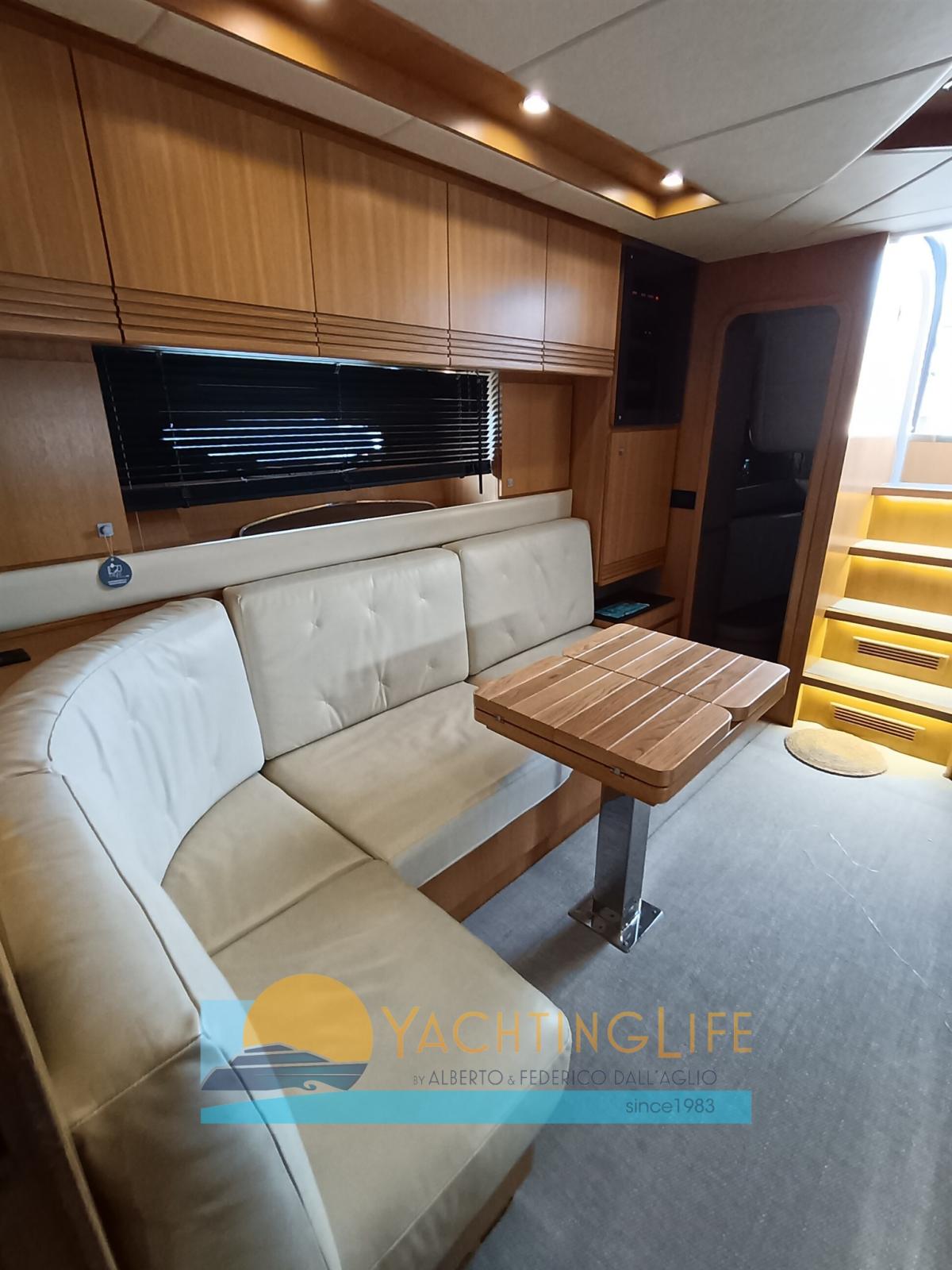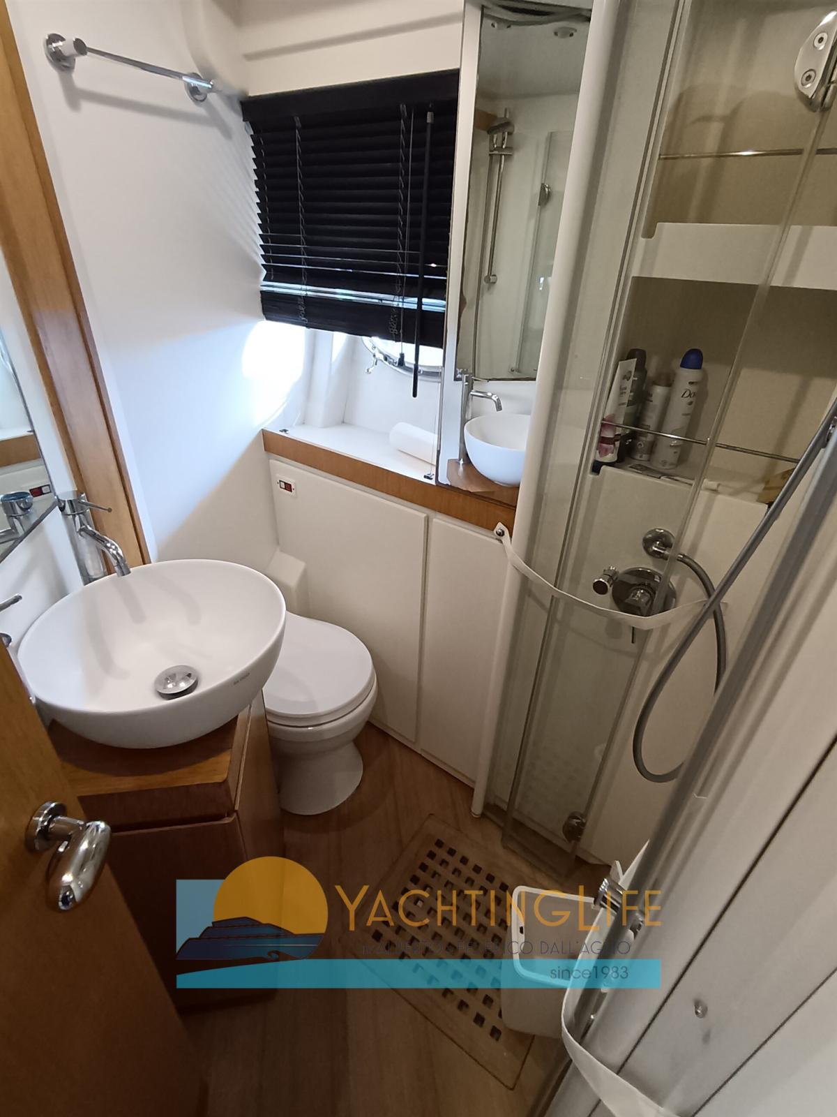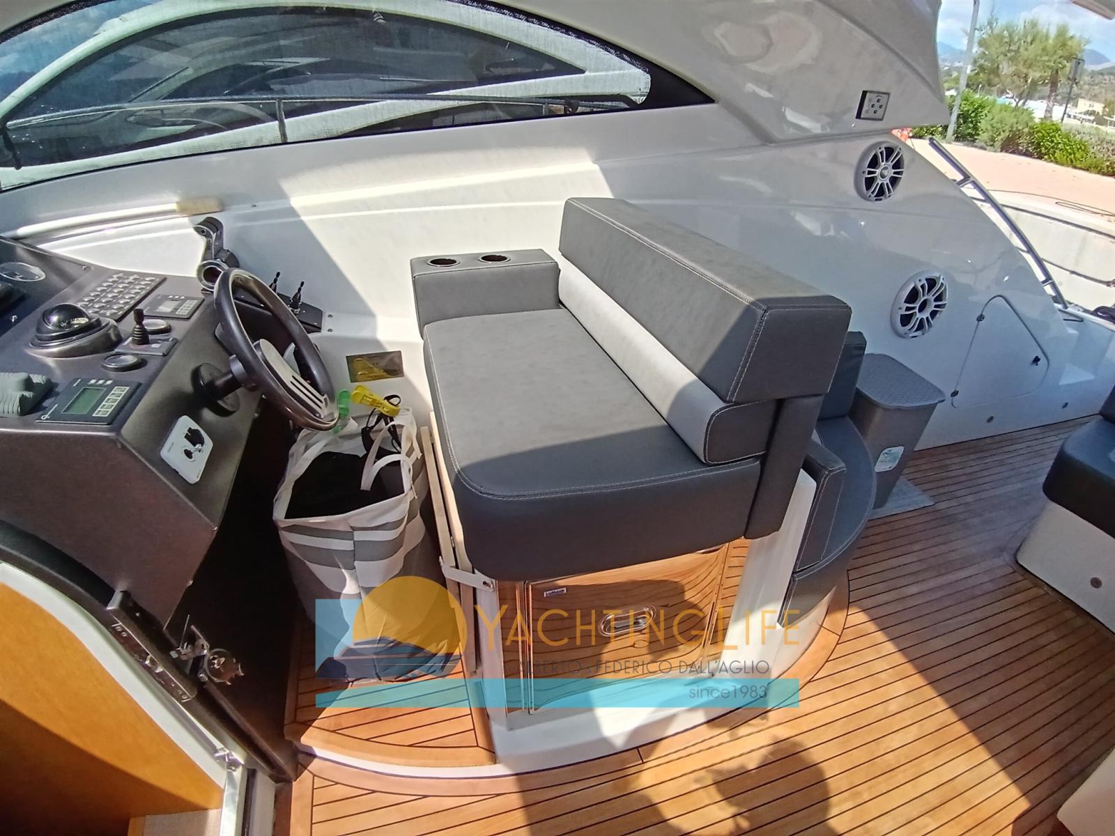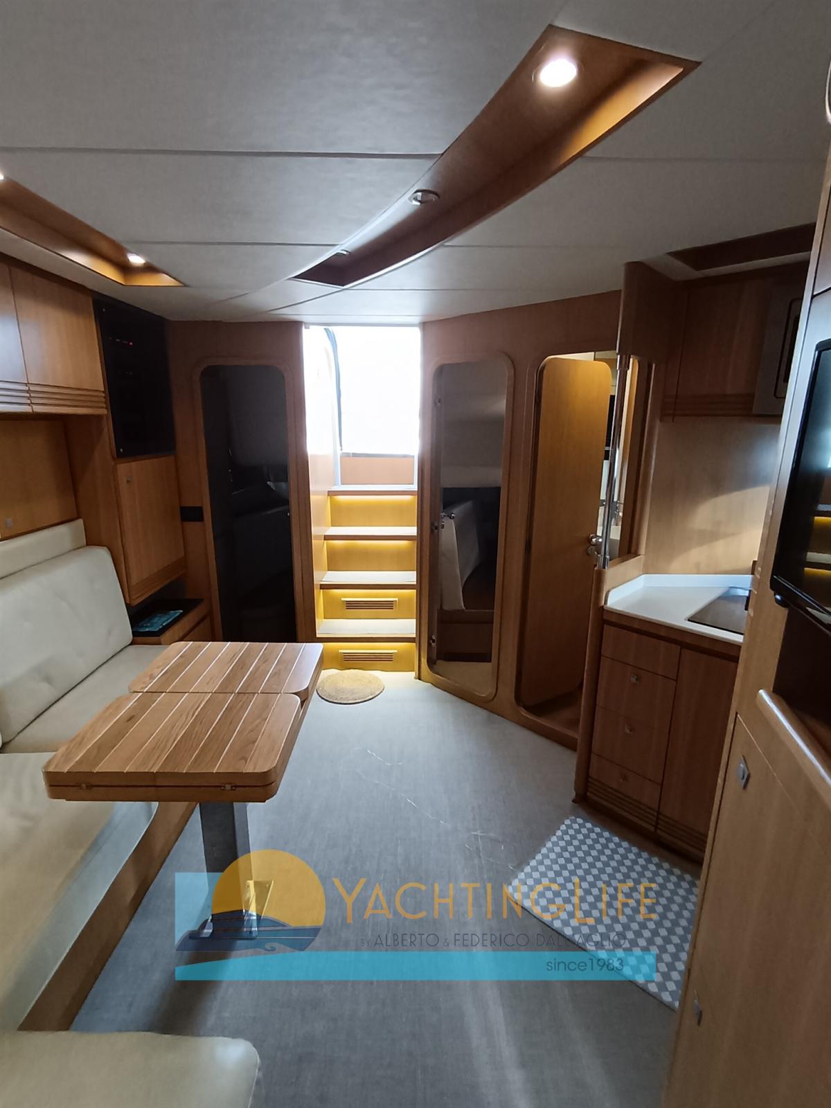 Engine Alarm, Bilge Alarm, Electric Engine Compartment Opening, Water pressure pump, Teak Side Decks, Deck Shower, Hydraulic Flaps, Hard top, Fire Extinguishing System, Flaps Indicators, Washbasin in the cockpit, Courtesy Lights, Gangway (idraulica), Platform, Automatic Bilge Pump, Entry door, Teak Cockpit, Shorepower connector, Electric Windlass, swimming ladder, cockpit table, Horn, Stern Winches.