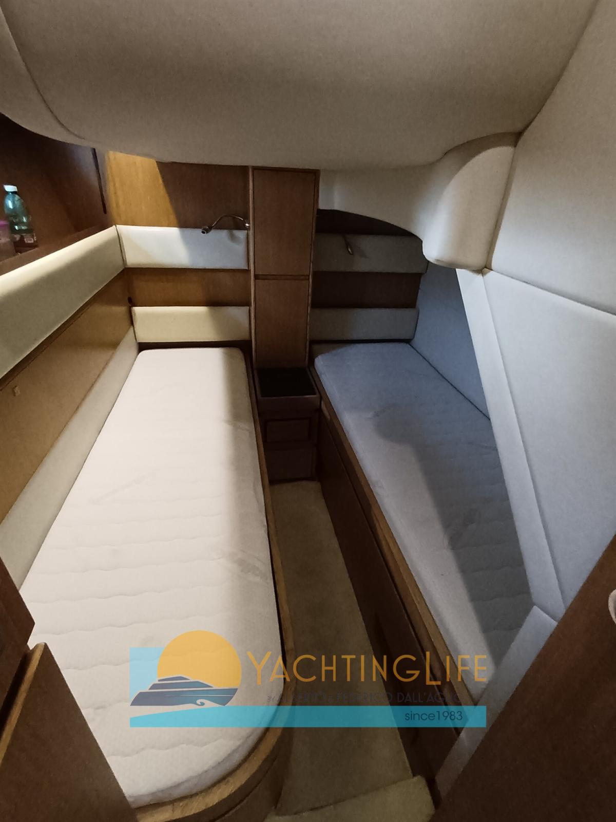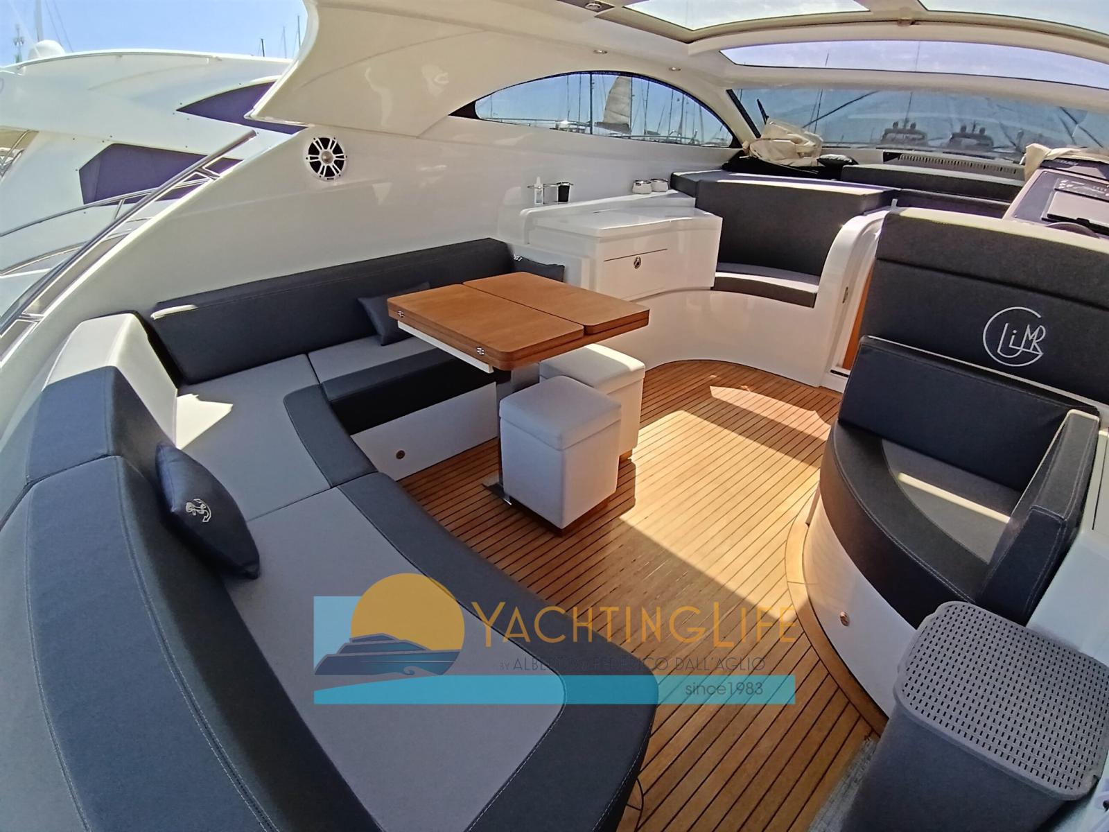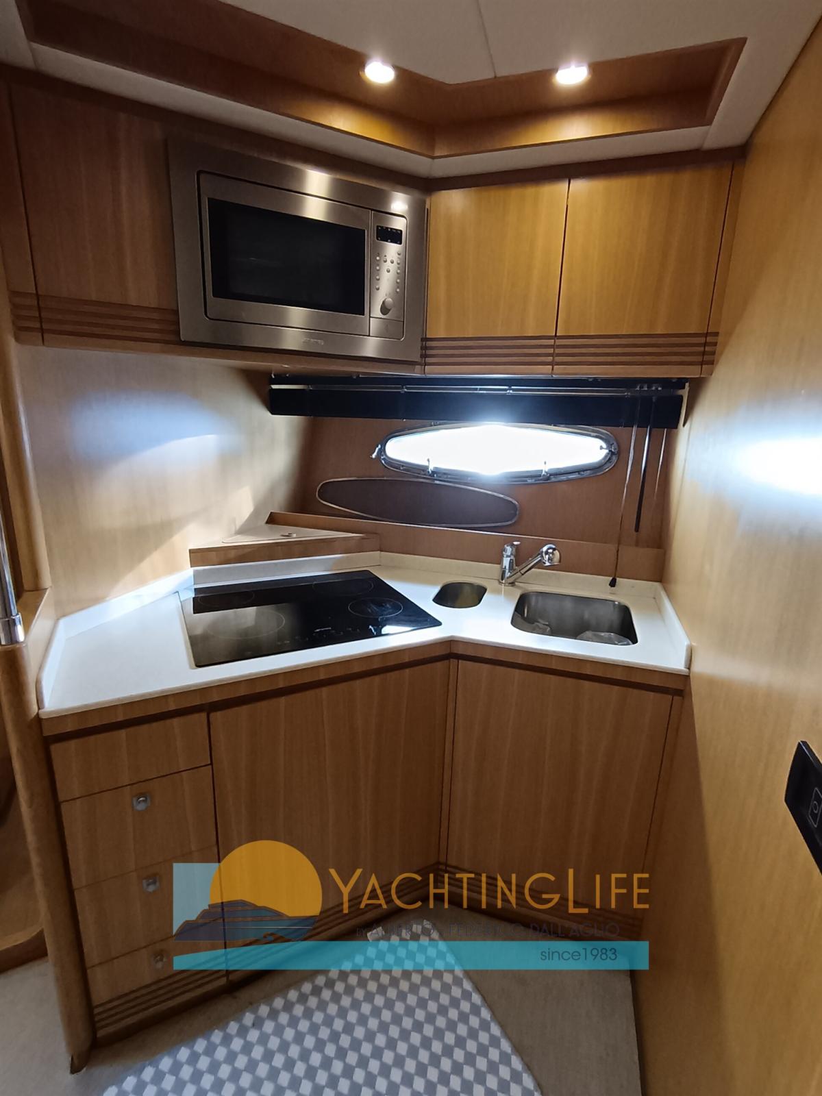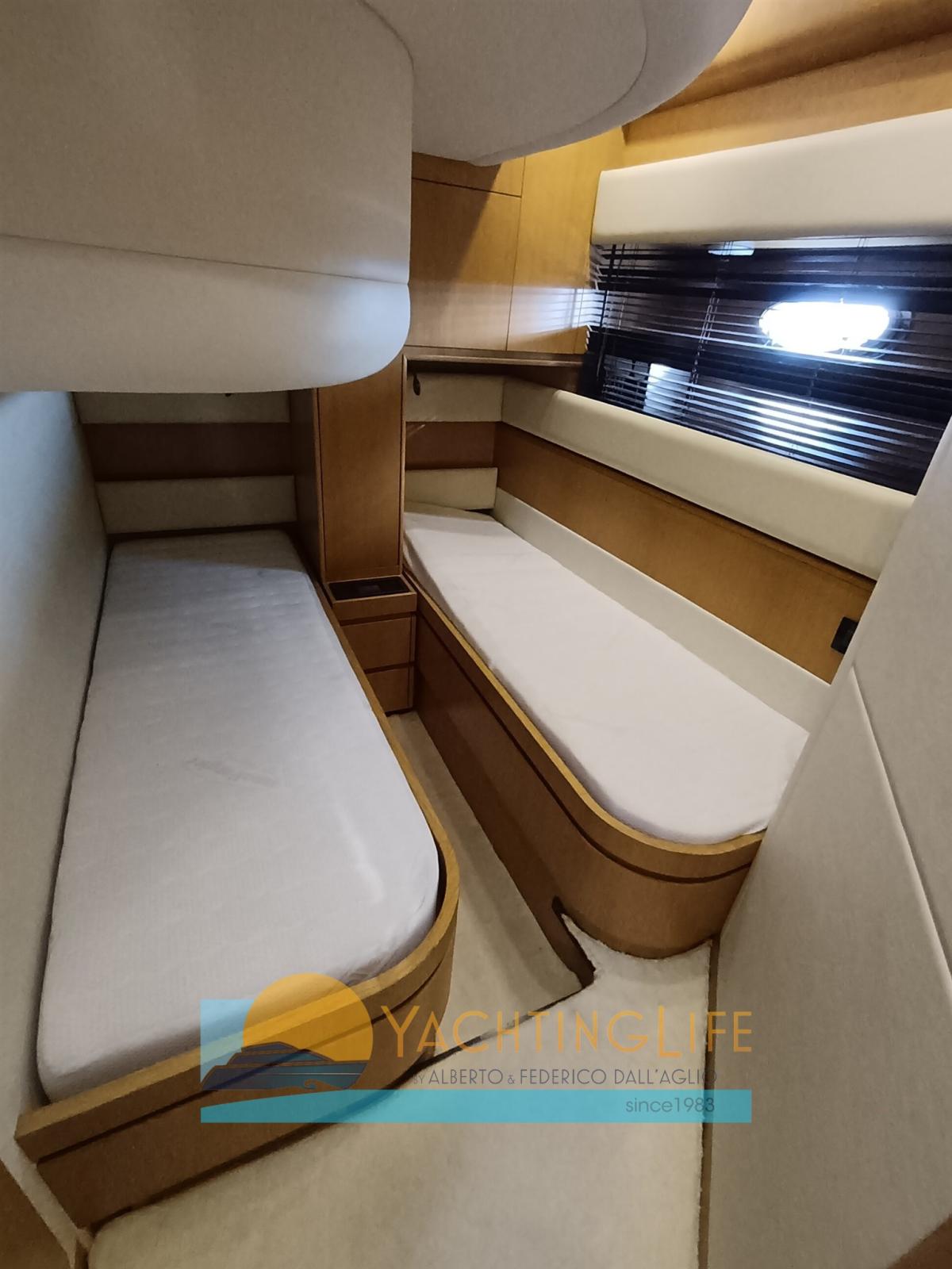 Engine Alarm, Bilge Alarm, Electric Engine Compartment Opening, Water pressure pump, Teak Side Decks, Deck Shower, Hydraulic Flaps, Hard top, Fire Extinguishing System, Flaps Indicators, Washbasin in the cockpit, Courtesy Lights, Gangway (idraulica), Platform, Automatic Bilge Pump, Entry door, Teak Cockpit, Shorepower connector, Electric Windlass, swimming ladder, cockpit table, Horn, Stern Winches.
