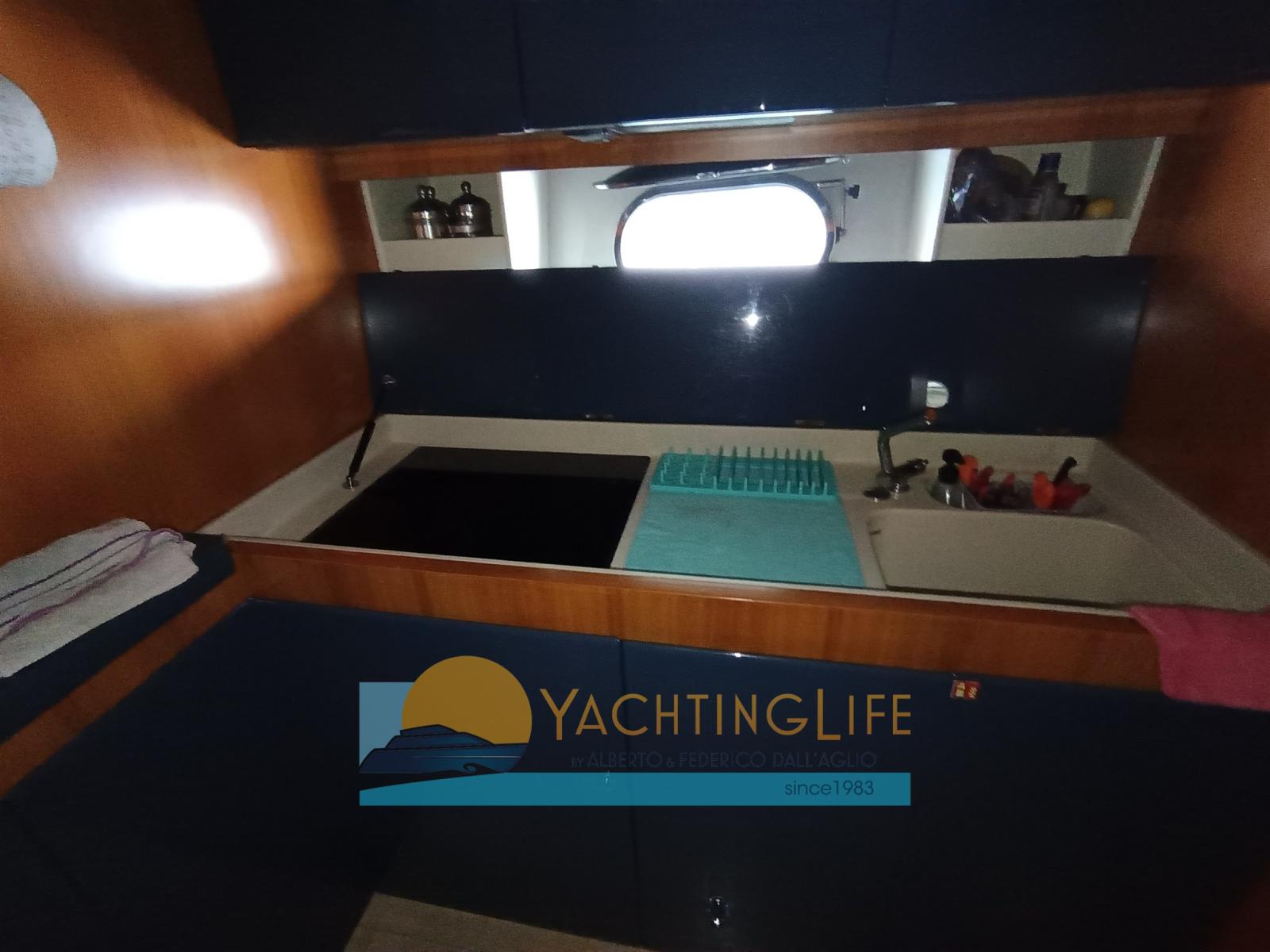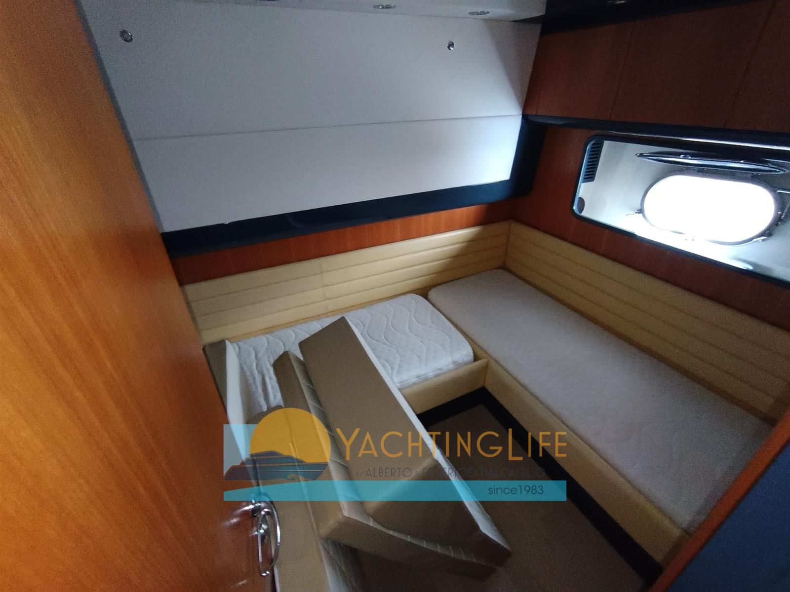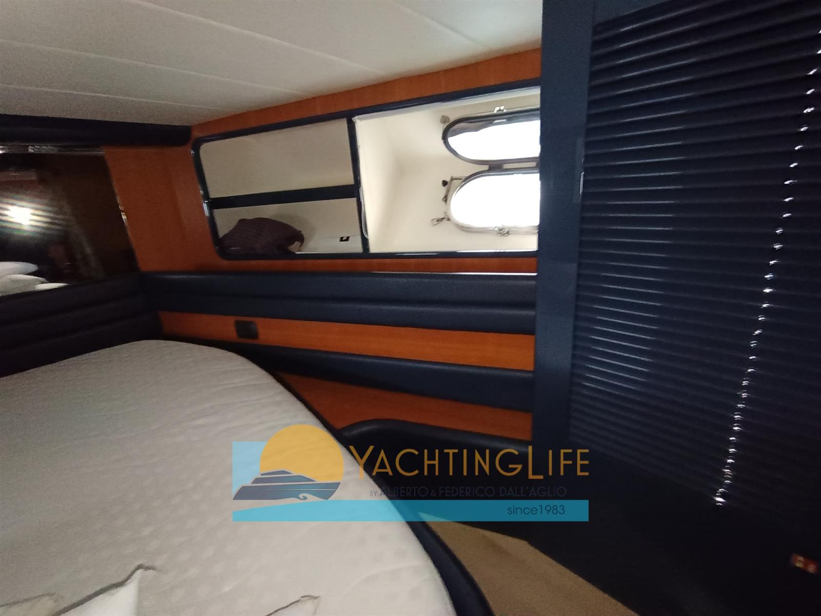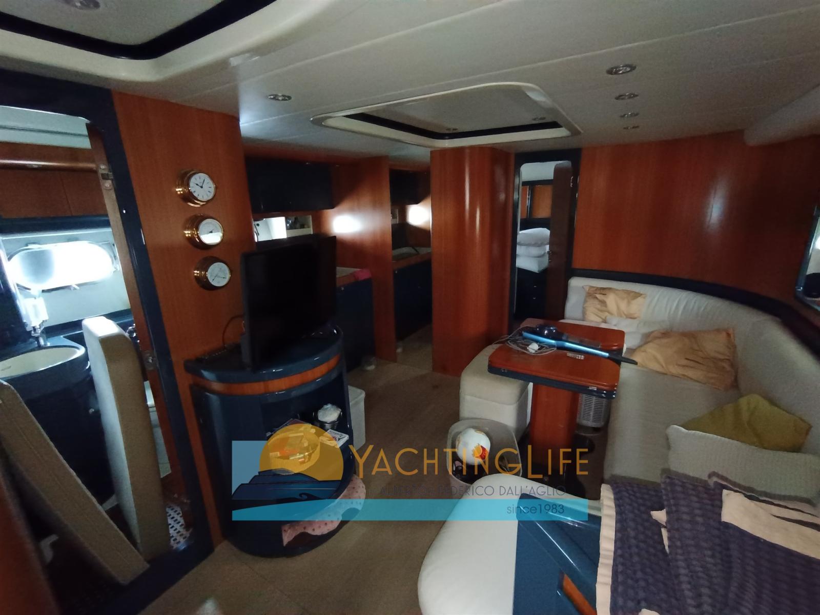 Engine Alarm, Water pressure pump, Shore power cable, Bow Thruster (Side Power), Directional Spotlight, Hydraulic Flaps, Fire Extinguishing System, Flaps Indicators, Washbasin in the cockpit, Courtesy Lights, Outboard engine for tender, Fenders, Gangway (Idraulica a scomparsa), Entry door, Shorepower connector, Rollbar, Electric Windlass, swimming ladder, cockpit table, Tender, Horn, Stern Winches.