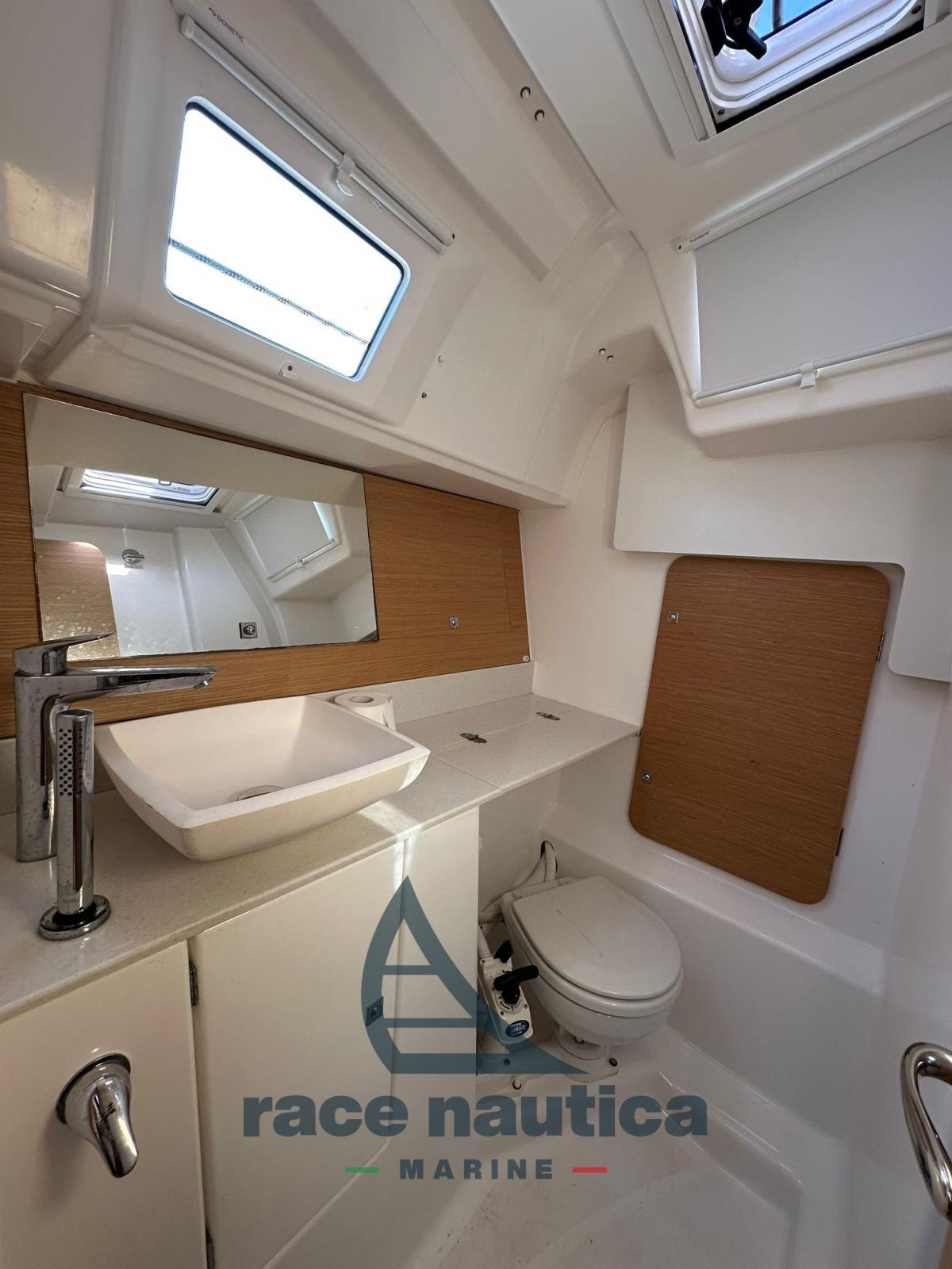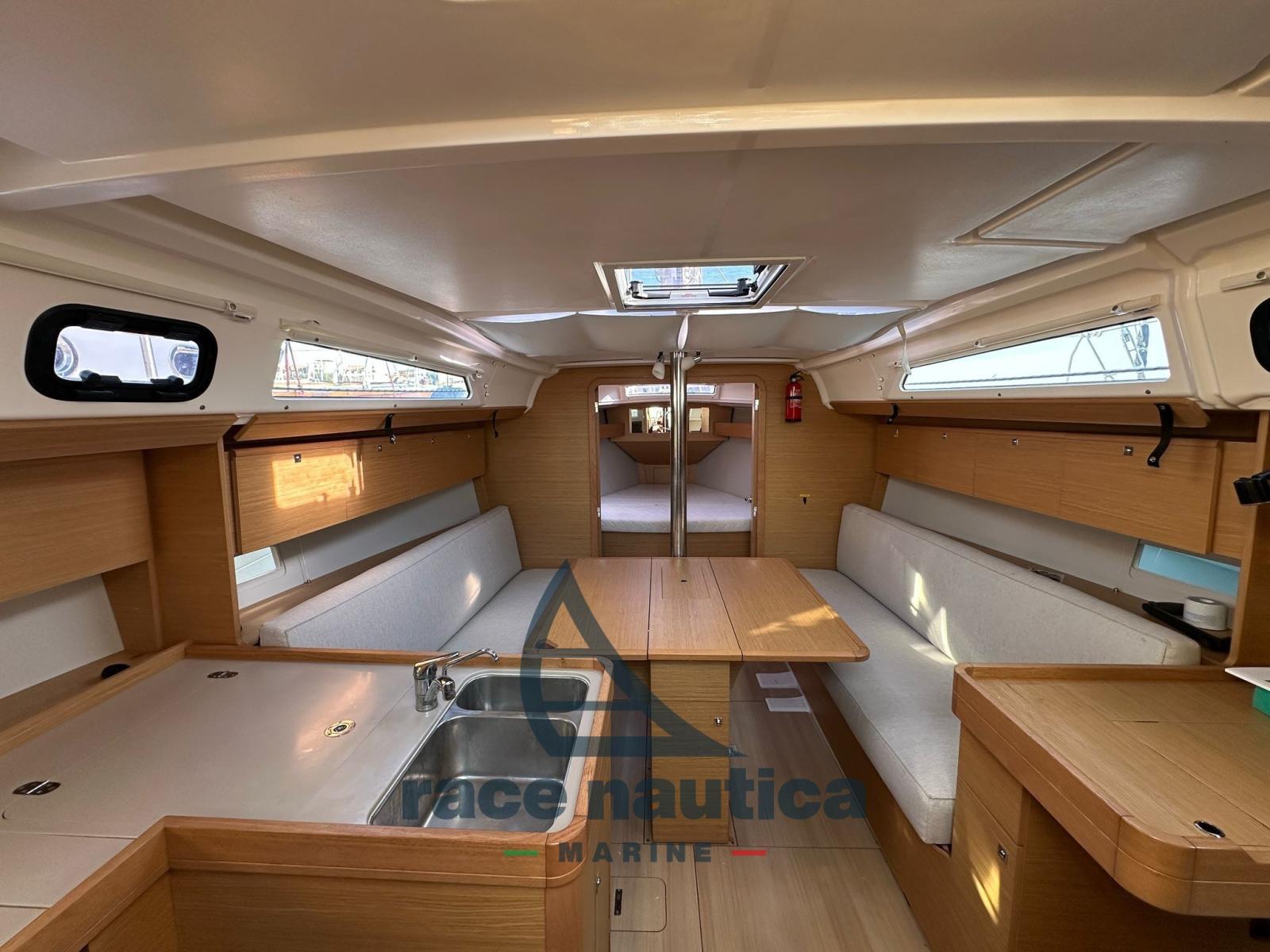 Additional opening porthole large aft cabin on the cockpit side, Oak interior, Grey Corian tops, OAK dunnage, Supplement for 29hp sail drive engine, retractable bow thruster, electronic cruising pack, two-blade folding propeller, 2 AR T40 winches for mainsheet, genoa and gennaker, gennaker equipment with fixed dolphin boat, upgrade for synthetic teak cockpit seats with grey joints, stainless steel bow protection, chinè cockpit cushions, anchor with 50m chain, 6 fenders, 3 mooring lines, additional water tank.