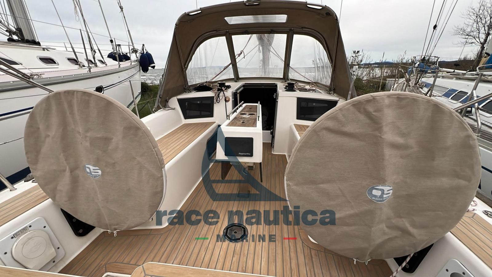 Additional opening porthole in the large aft cabin on the port side of the cockpit, oak interior, grey Corian countertops, oak floorboards, supplement for 29hp sail drive engine, retractable bow thruster, electronic cruising pack, two-blade folding propeller, 2 AR T40 winches for mainsail, genoa and gennaker sheets, gennaker equipment with fixed spinnaker pole, upgrade for synthetic teak cockpit seats with grey joints, stainless steel bow protection, chinè coloured cockpit cushions, anchor with 50m chain, 6 fenders, 3 mooring lines, additional water tank.