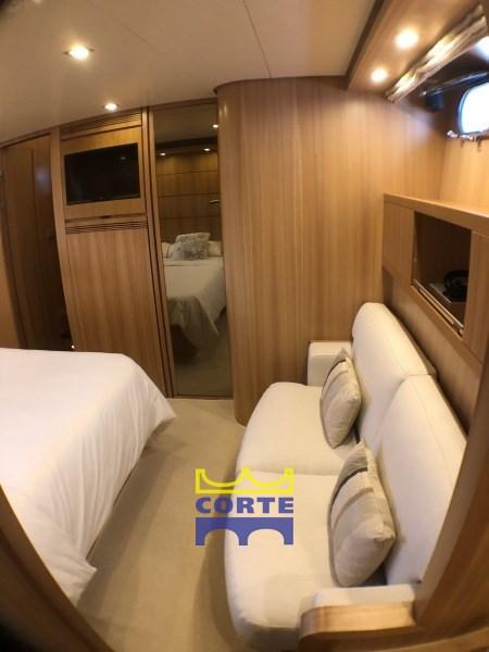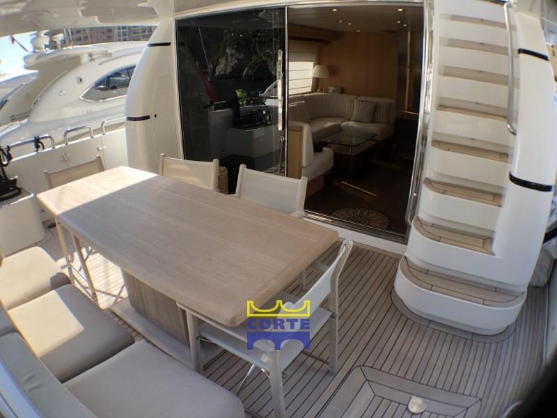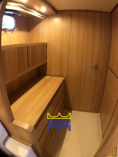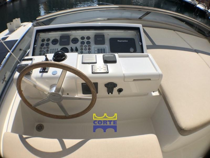 Engine Alarm, Bilge Alarm, Anchor (recente), Water pressure pump, Teak Side Decks, Deck Shower, Directional Spotlight, Hydraulic Flaps, Davits for tender on fly, Fire Extinguishing System, Flaps Indicators, Courtesy Lights, Gangway (elettroidraulica), Platform (poppa), Automatic Bilge Pump, Entry door, Side door, Teak Cockpit, Shorepower connector, Water harbor connector system, Rollbar, Electric Windlass, swimming ladder, cockpit table, Tender (Zodiac 340 con Yamaha 30 hp), Horn, 2 Stern Winches, Bow Winches.
