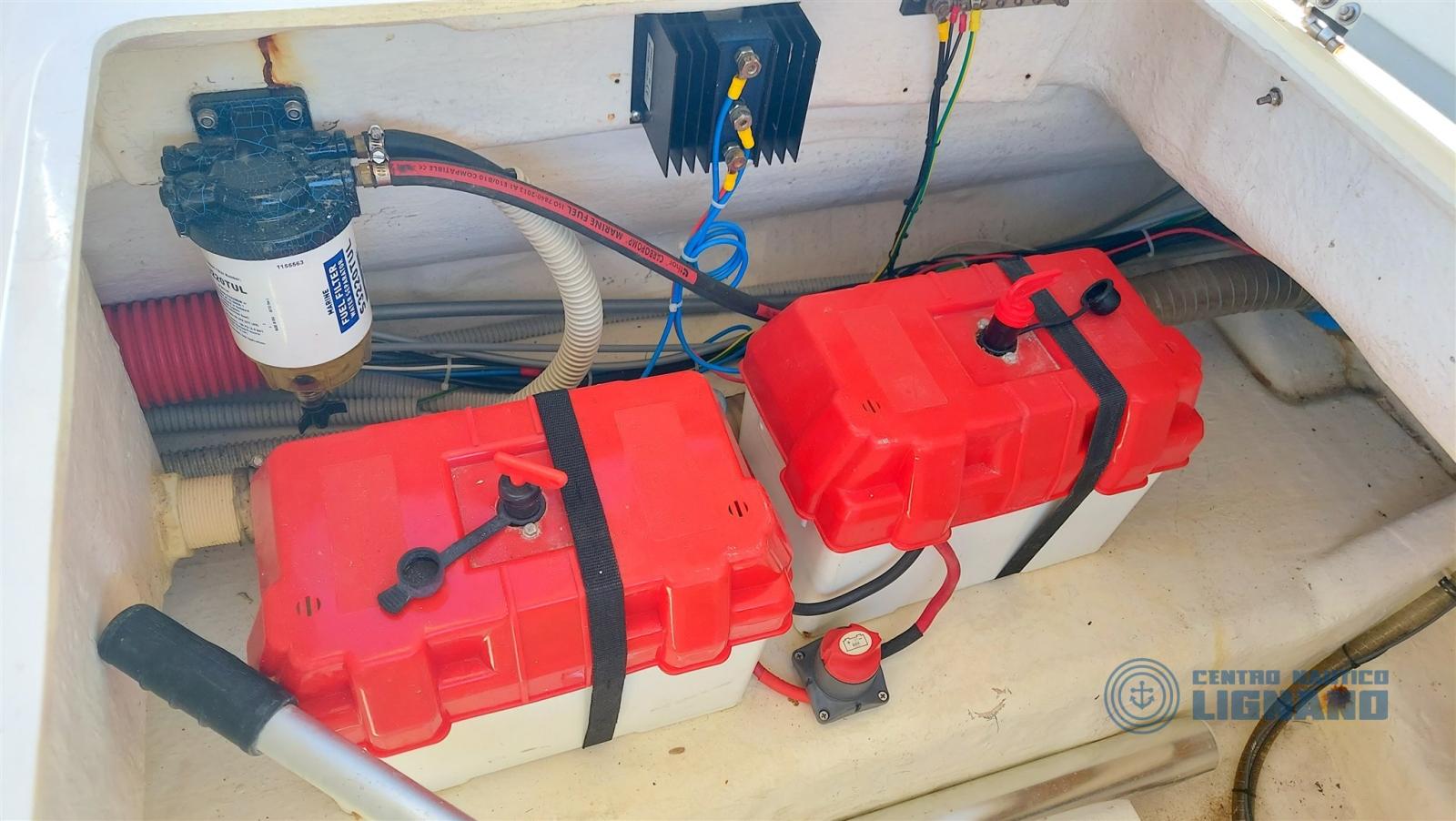 Complete with: electric winch with anchor and chain, Quick 2023 chain counter, 2025 batteries, stern synthetic teak 2025, stereo system with 2 speakers, complete cushions 2023, refrigerator box with cushion above, 12V socket, shower system with autoclave, compass, Garmin 2023 GPS with transducer, electric bilge pump, bathing ladder, trumpet, stainless steel T-Top, visible at Centro Nautico Lignano! Deal not to be missed, price not very negotiable.