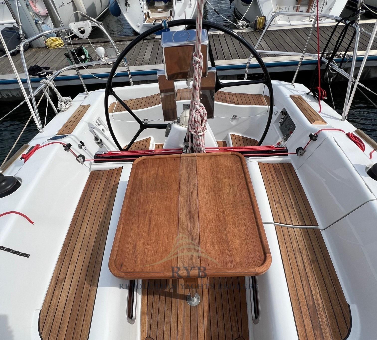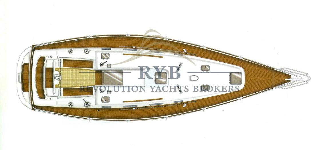 Anchor (DELTA 20 KG + 65 m. di catena, diam.8), Battery charger (45aH), Deck Shower, Bow Thruster (RMC - RETRATTILE), Courtesy Lights, Platform, Teak Cockpit, Electric Windlass (1400W + Pulsantiera con contametri e strumento ripetitore comando in pozzetto), Strand rigging, swimming ladder, cockpit table (PIEGHEVOLE E ASPORTABILE), Winch, 3 Winch Electric (HARKEN), Windex.