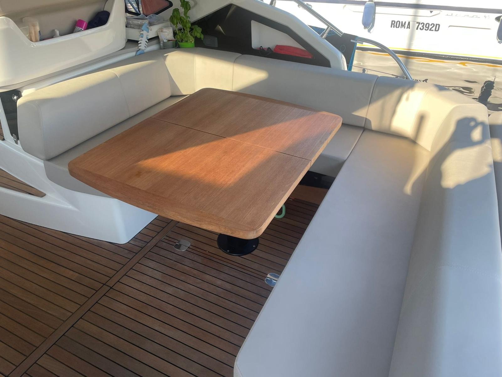 Bimini (top di prua a 3 archi), Sprayhood (chiusura completa colore nero), Cockpit Cover (in microforato), Cushions (in Silvertec), Stern Cushions, Bow Cushions (con copertura centrale, portabicchieri e portaoggetti), Cockpit Cushions, Blackout Curtains (completo verticale più laterali e parabrezza), Sunbathing deck (con battigliole).