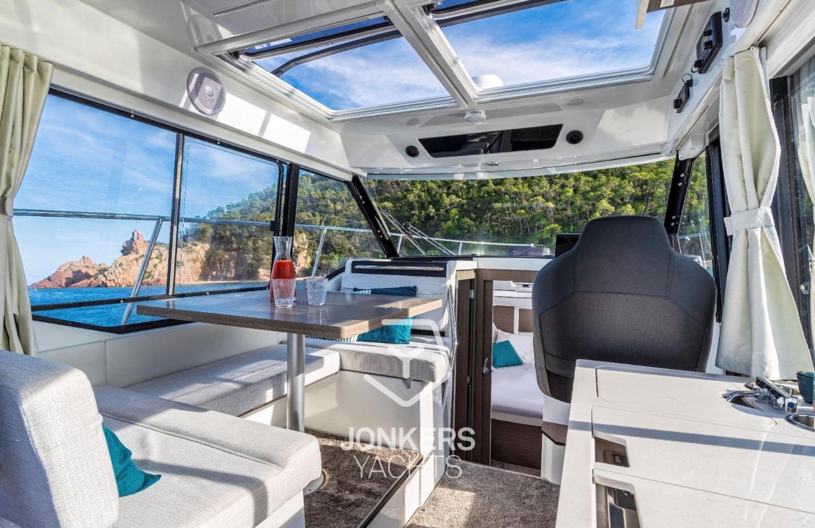 The interior space offers a 360-degree view of the sea. Plenty of storage space and a new, modern and practical galley contribute to a pleasant time on board. When the sun shines, the sliding glass door can be slid away to bring the living space into the cockpit. With the Merry Fisher 895 Series 2, family cruises are possible in any season.
