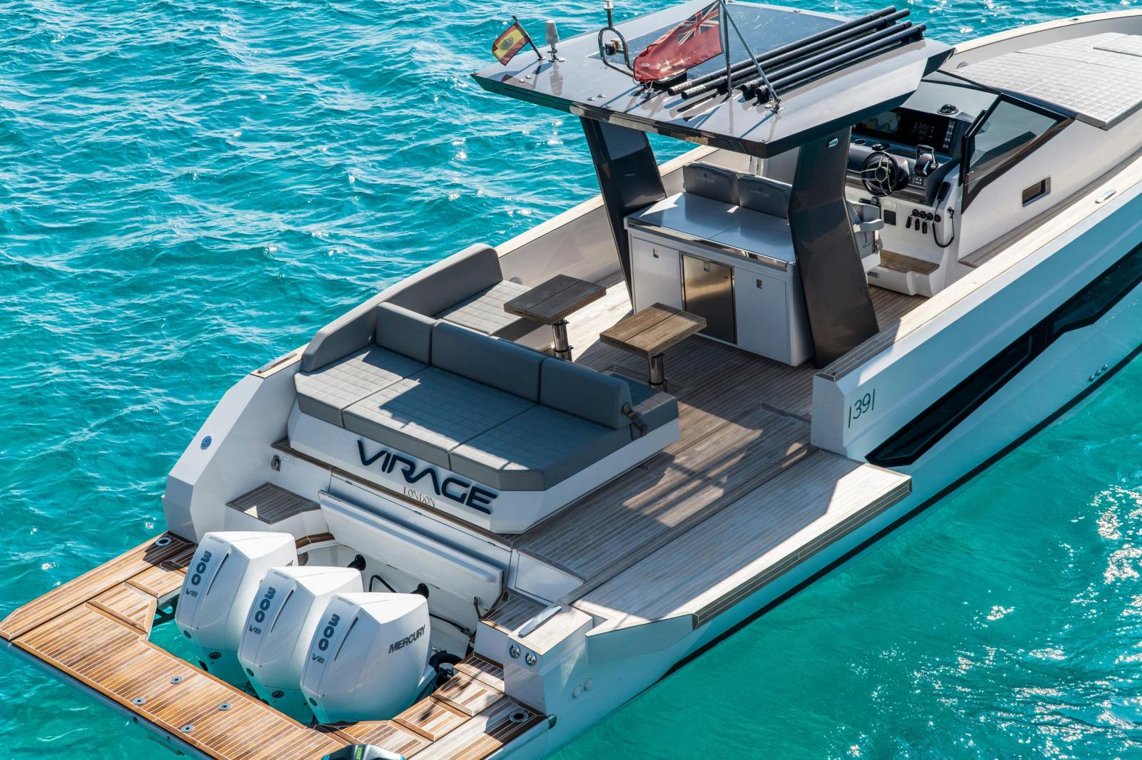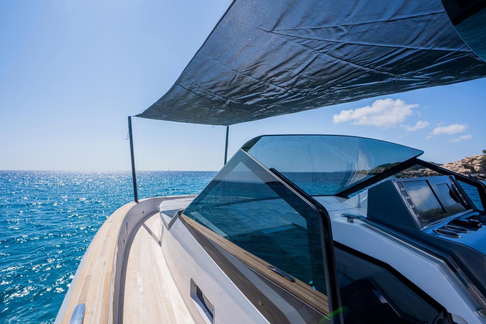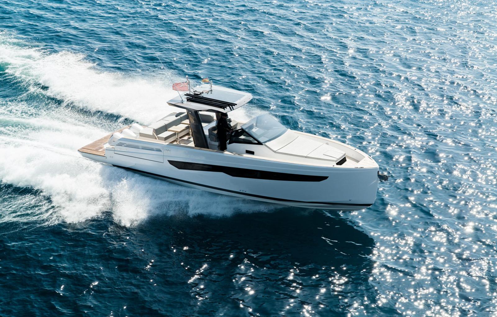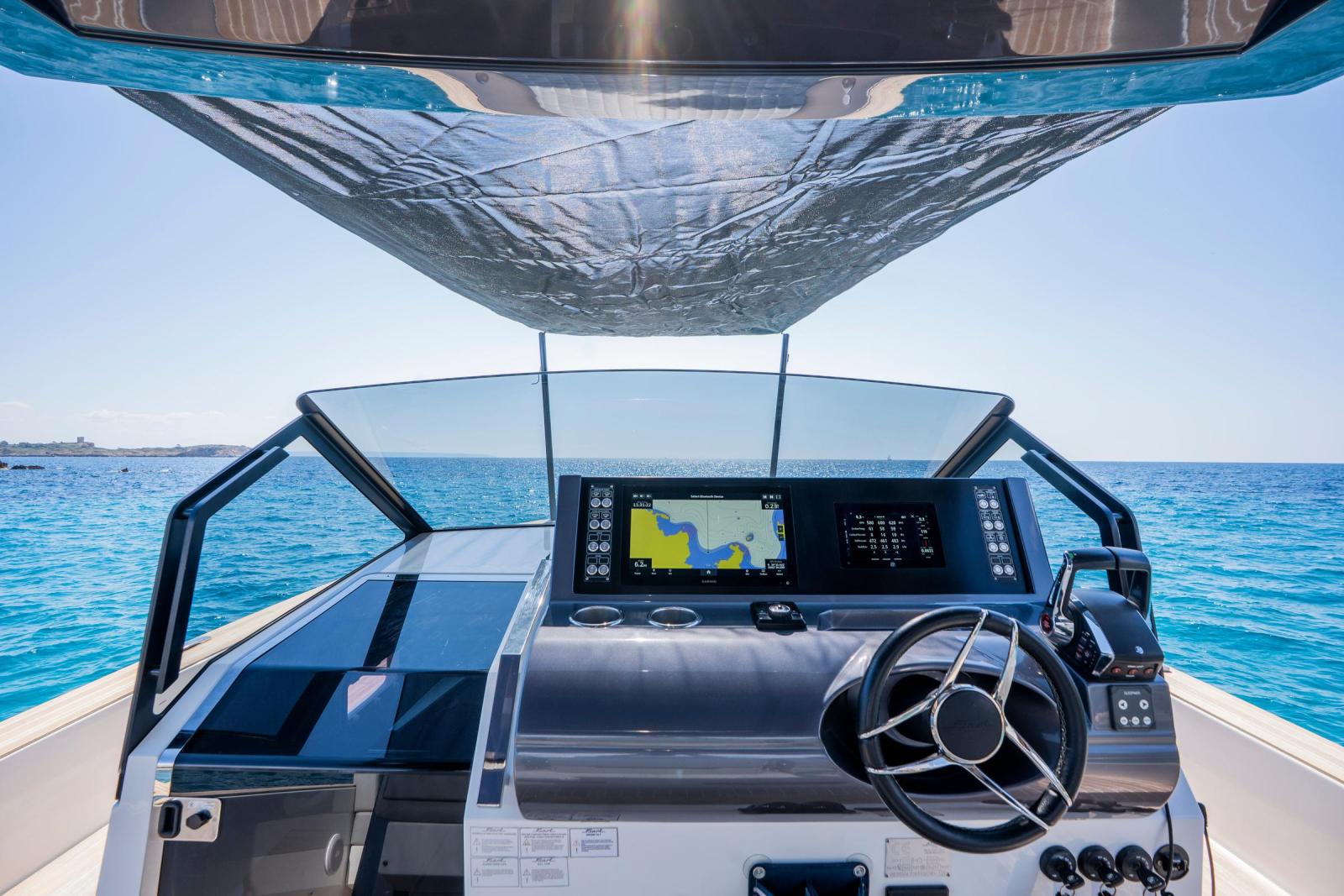 Built in 2023 by Fiart Mare in Baia, Naples, this exceptional open motor yacht represents one of the finest examples of Italian craftsmanship available on the market today. Measuring 12.61 metres LOA with a 3.86-metre beam, the Fiart 39 combines a sleek, aggressive hull design with remarkable onboard comfort, including two private cabins ideal for overnight cruising across the Mediterranean. Power comes from a triple Mercury Verado V8 300hp outboard package delivering 900 horsepower, paired with a full Garmin electronics suite, Sleipner bow thruster, and retractable sunshade over the helm. The generous teak cockpit offers expansive seating and socialising space, while the clean white GRP hull and minimalist Italian lines make her instantly recognisable underway. Currently located in Puerto Portals, Mallorca. VAT not paid. Available for immediate viewing.