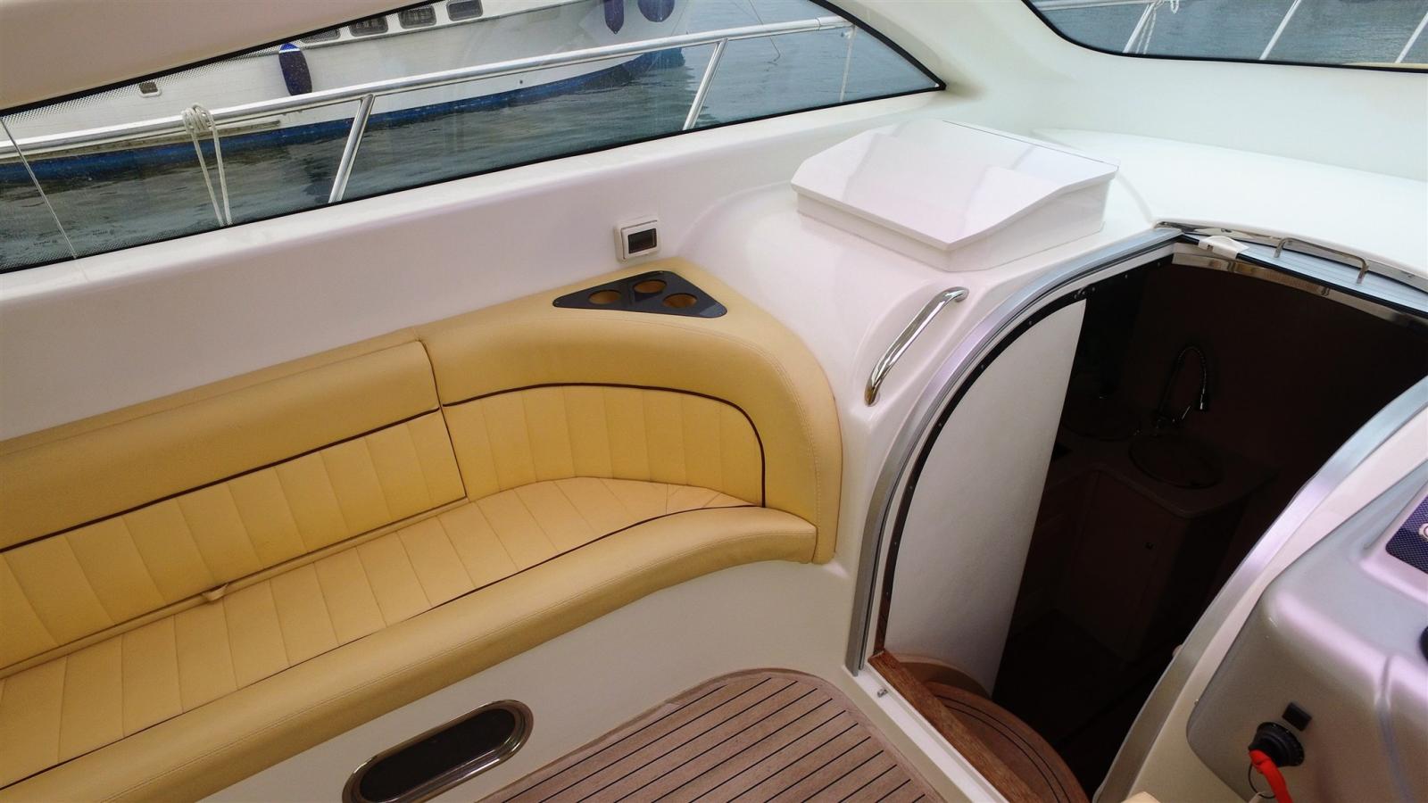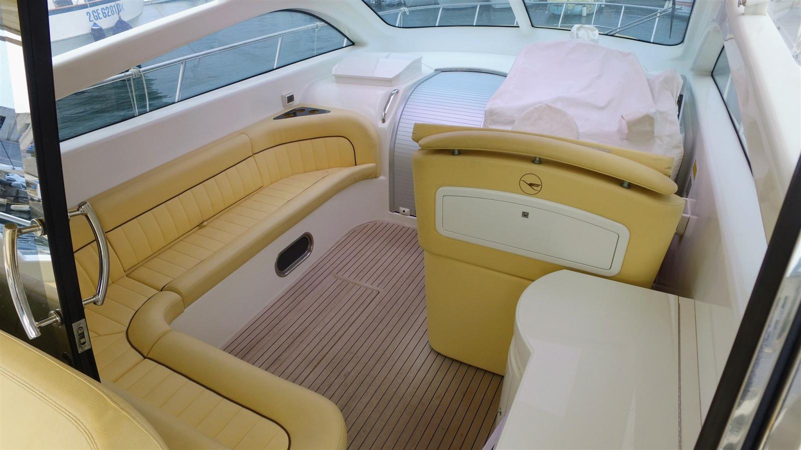Engine Alarm, Anchor (Inox), Electric Engine Compartment Opening, Water pressure pump, 4 Batteries, Battery charger (Quick 40 amp), Deck Shower, Directional Spotlight, 2 Electric Flaps, Hard top, Washbasin in the cockpit, Auxiliary Engine (2,3 honda), Gangway (Hydraulique), Platform, Automatic Bilge Pump, Manual Bilge Pump, Teak Cockpit, Shorepower connector, Electric Windlass, swimming ladder, 2 cockpit table, Living Room Foldable Table, Tender (Arimar 2 m), T-Top (Ouvrant).