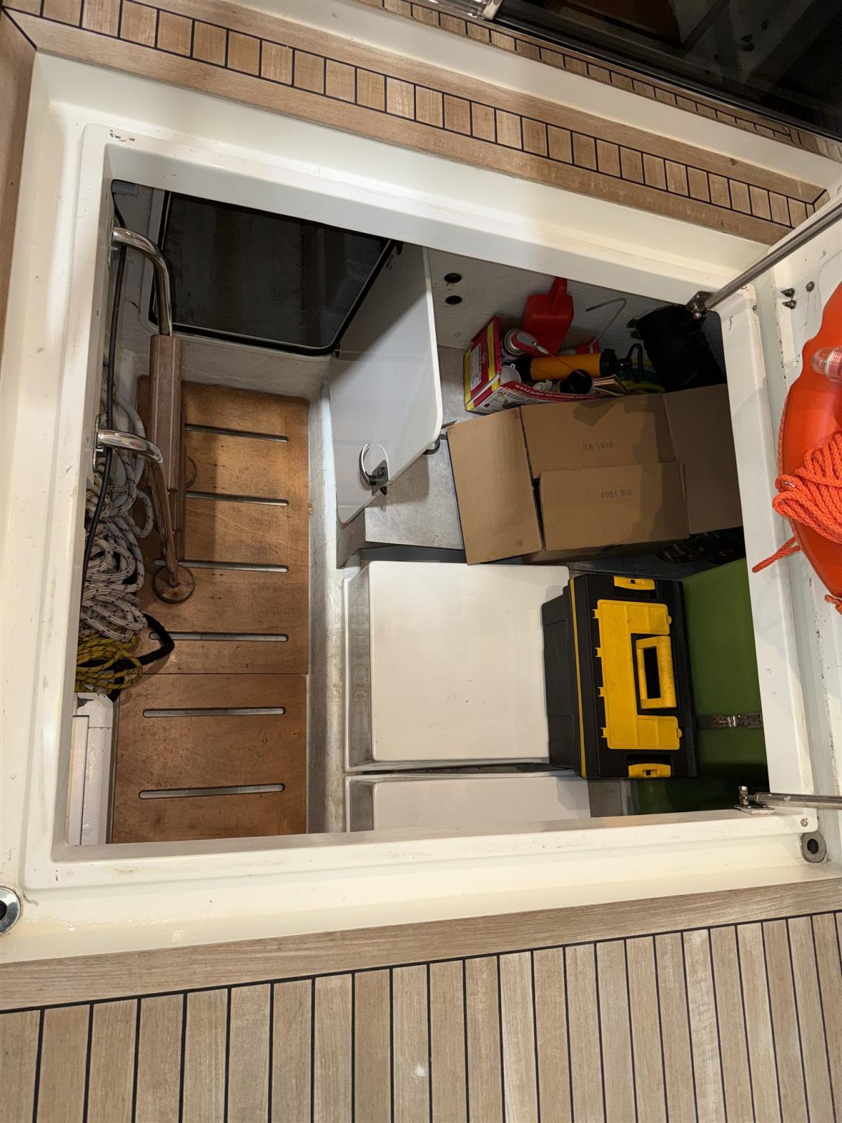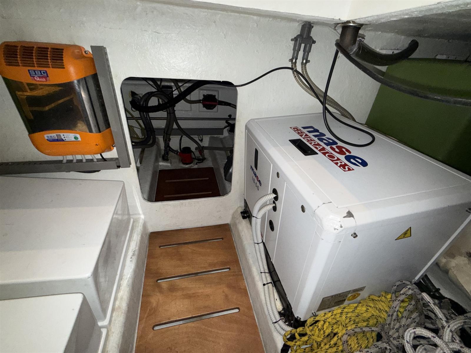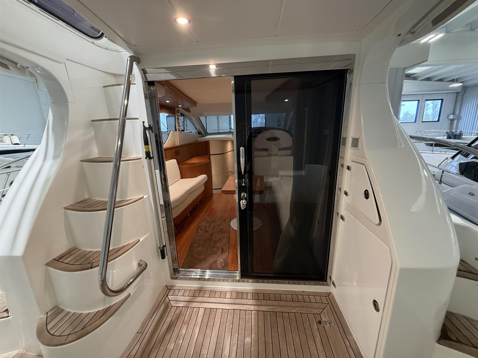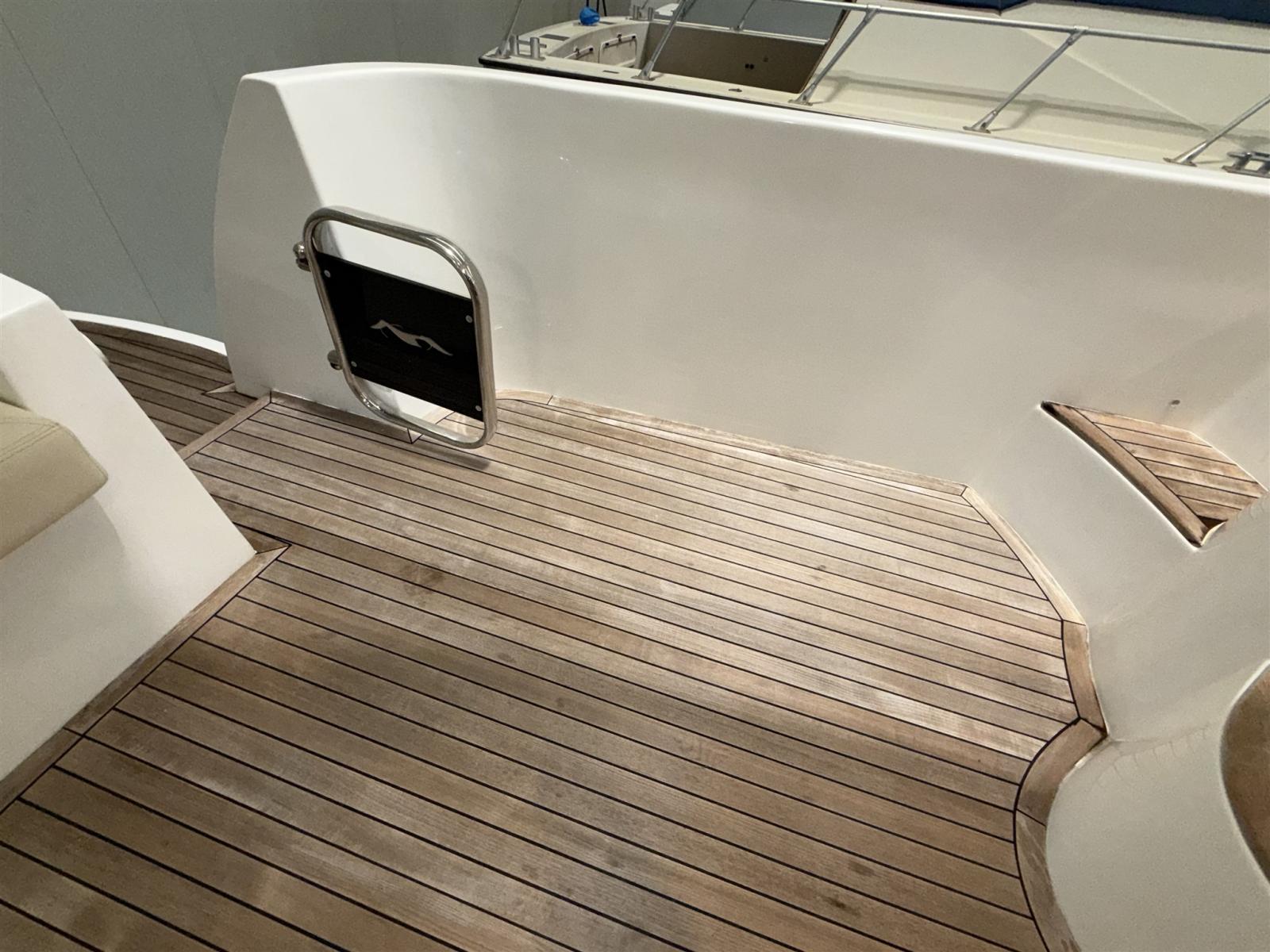 Fume/Gas Detector, Engine Alarm, Water pressure pump, Shore power cable, Deck Shower, 2 Hydraulic Flaps, Gangway (IDRAULICA), Platform, Automatic Bilge Pump, Teak Cockpit, Shorepower connector, Rollbar, Electric Windlass, swimming ladder, Horn.